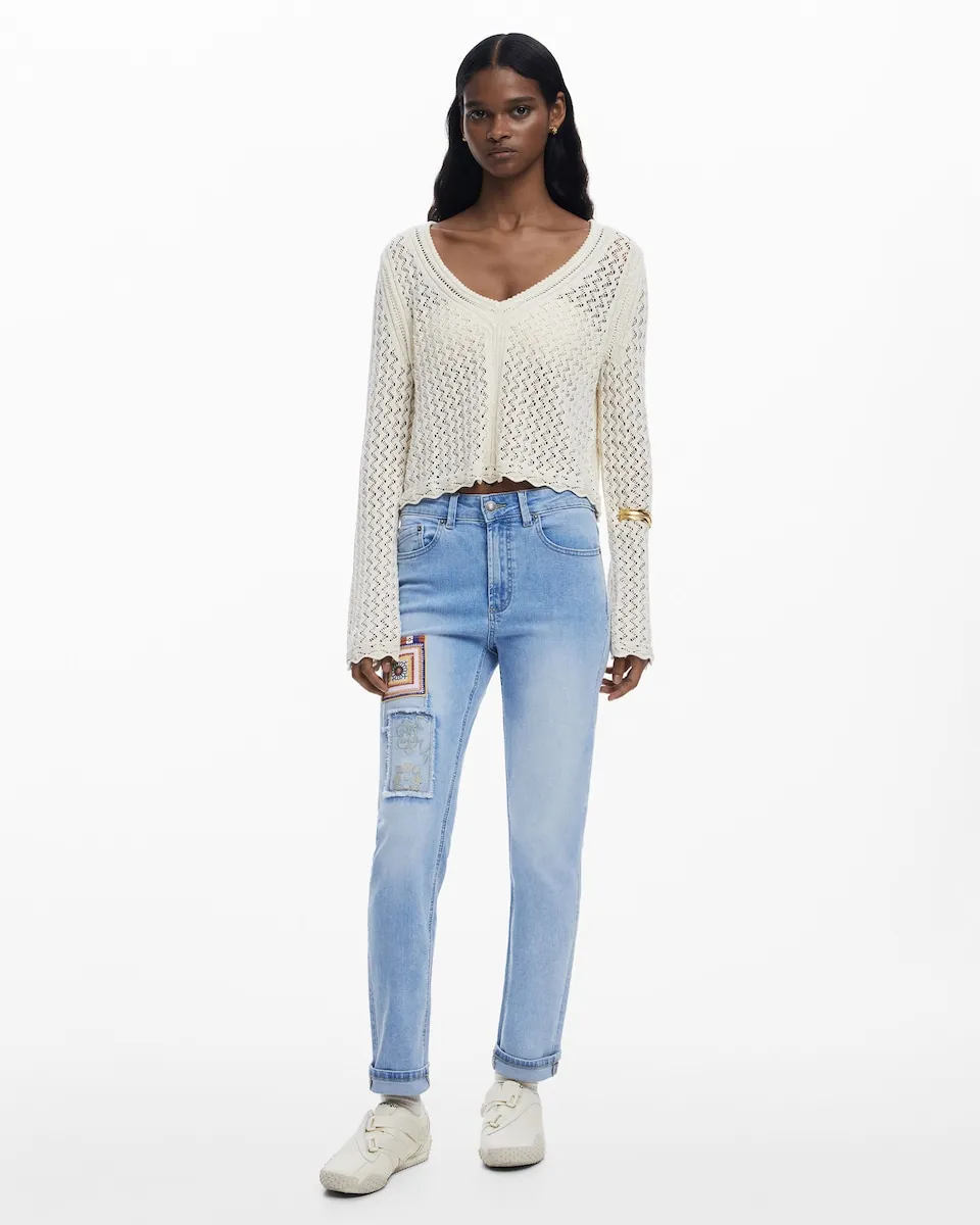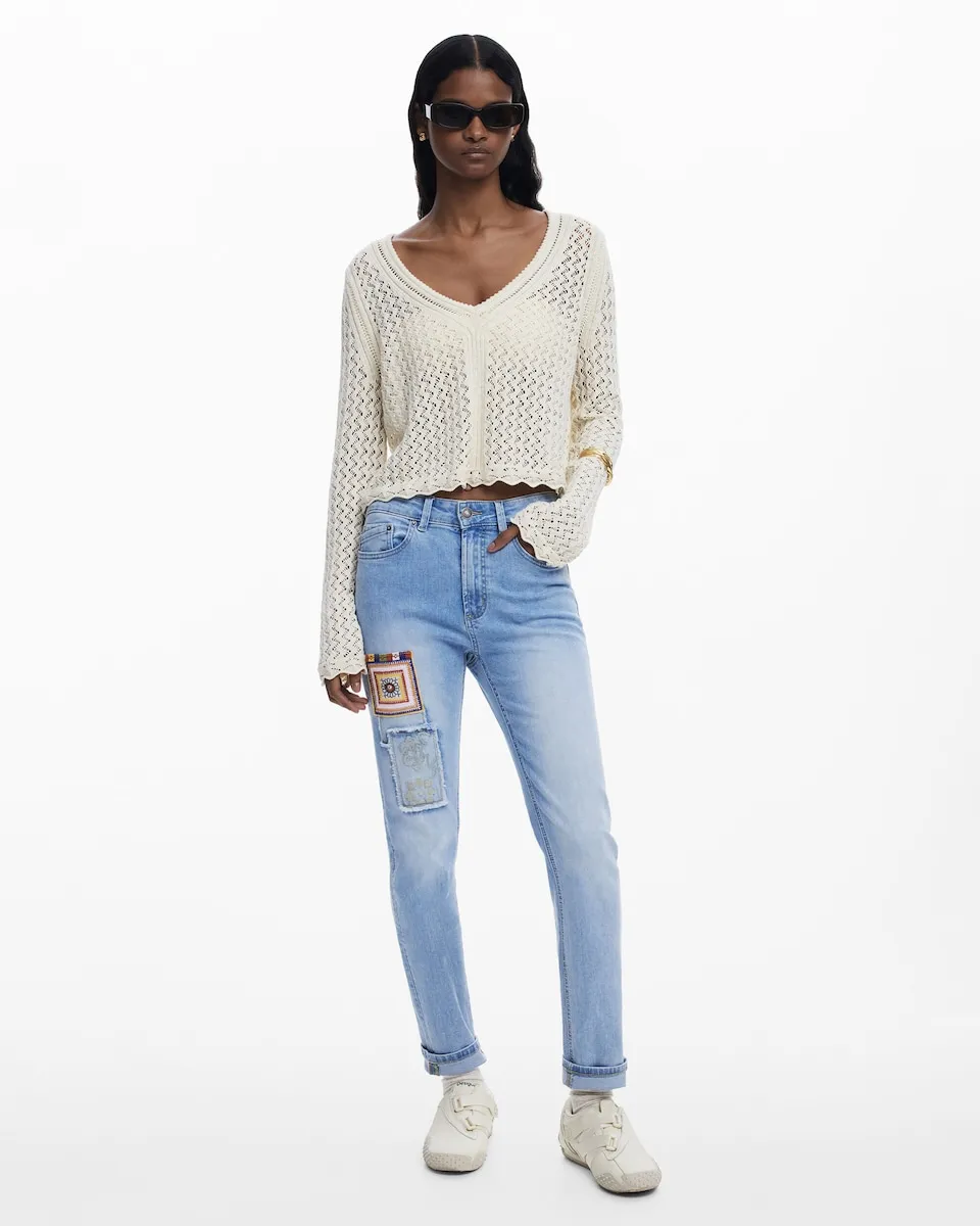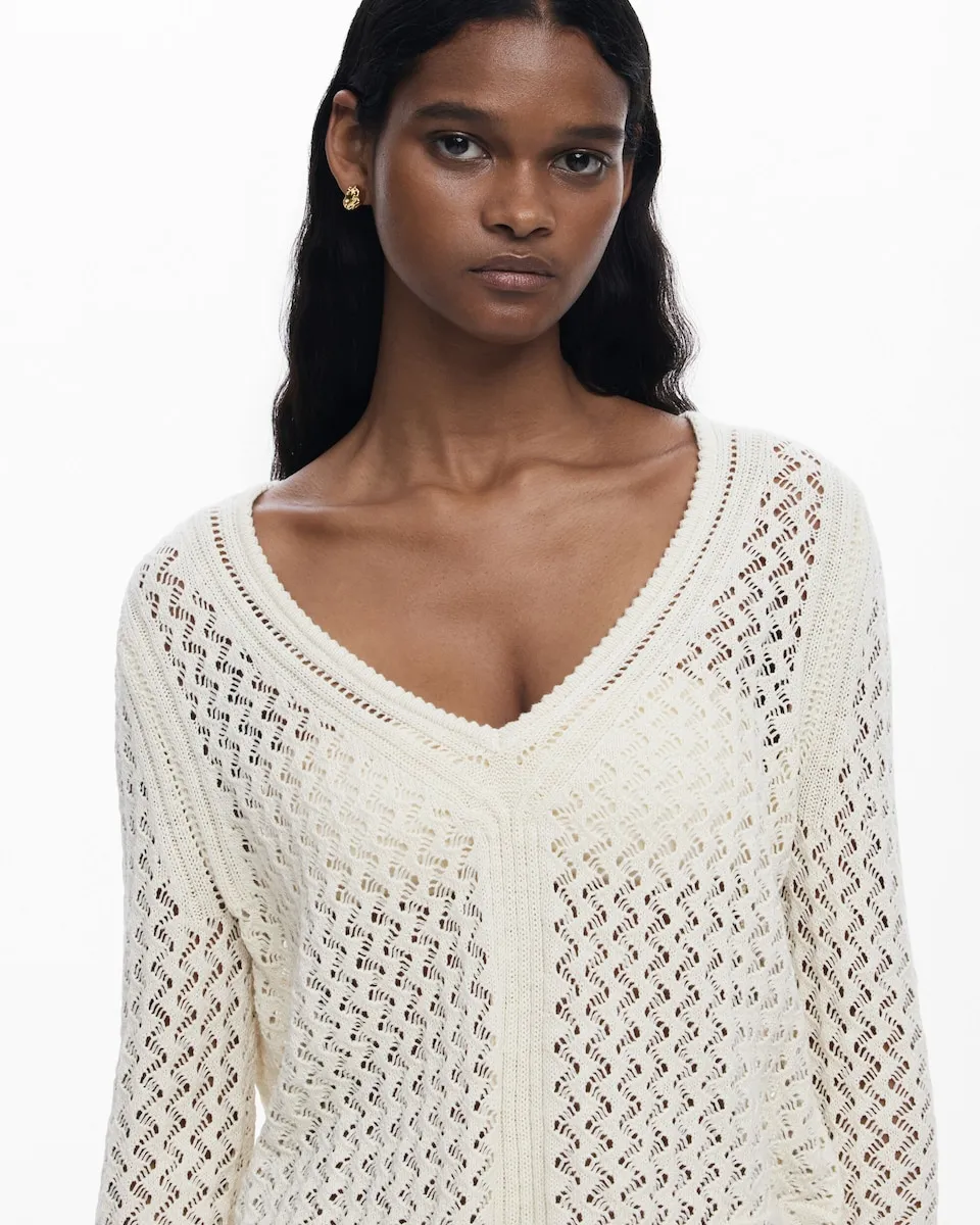 Однотонный свитер крупной вязки с длинными рукавами и V-образным вырезом. V-образный вырез. Рукав: длинный. Приобретая хлопковые изделия у Desigual, вы поддерживаете наши инвестиции в Better Cotton. Этот продукт получен с помощью системы баланса массы и может не содержать Better Cotton. bettercotton.org/massbalance..