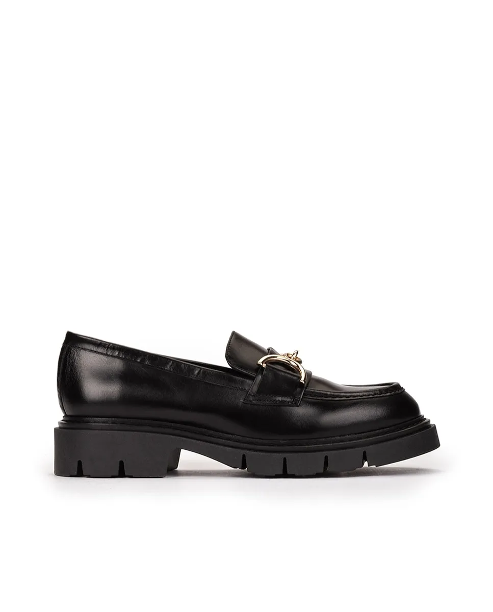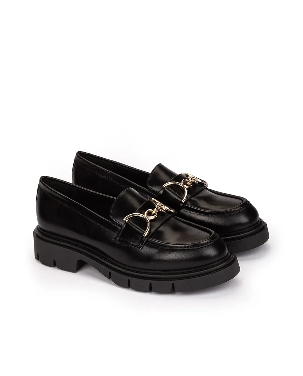 Женские кожаные мокасины на платформе. Деталь в виде пряжки на подъеме ноги придает модели изысканность. Его дизайн сочетает в себе современность платформы с классическим стилем силуэта.
