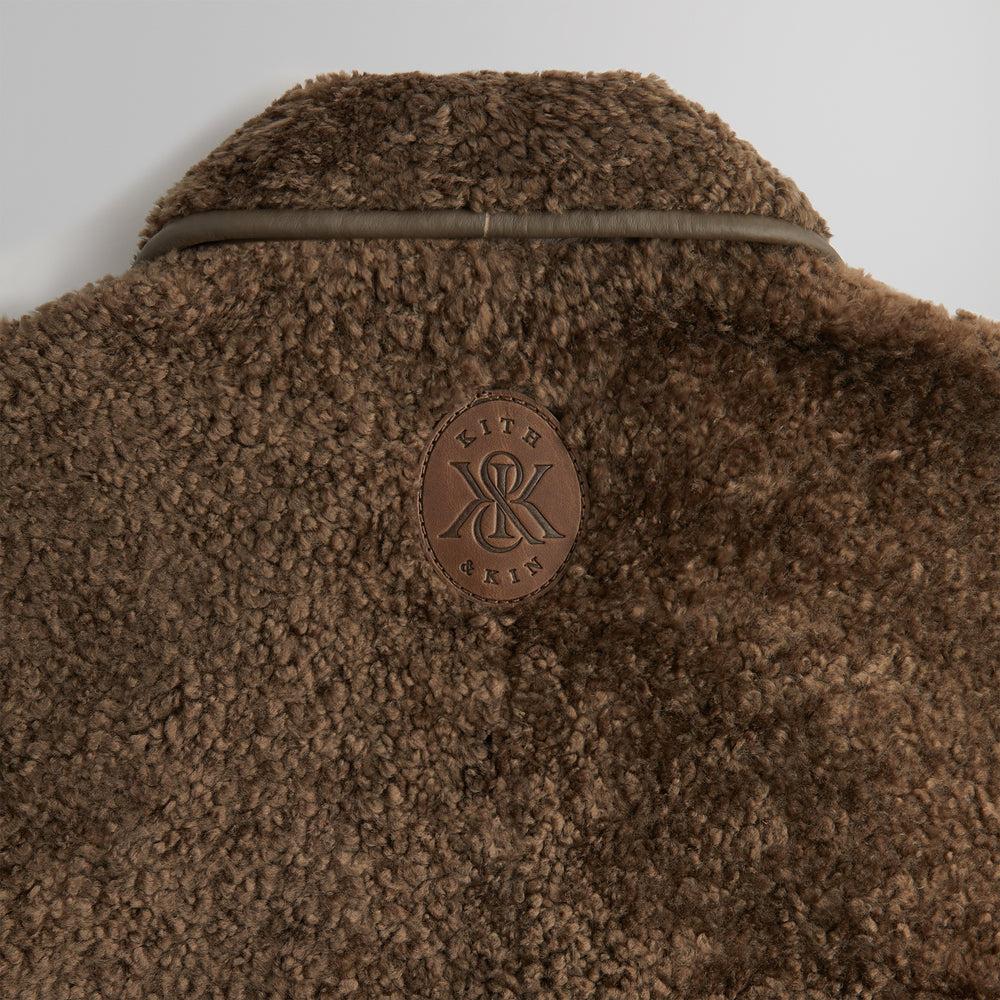 Куртка Archer Shearling изготовлена из драпированной кудрявой овчины с кожаной окантовкой на воротнике, центральной части переда, манжетах рукавов и подоле. Она имеет застежку-молнию с логотипом Kith спереди, накладные карманы на корпусе и кожаную нашивку с логотипом Kith Crest на задней части горловины.