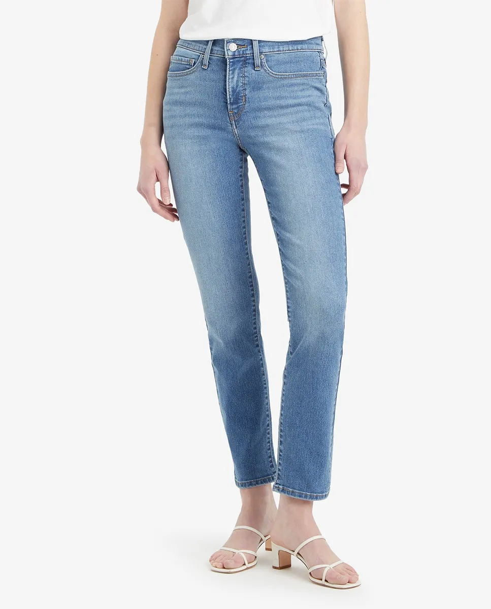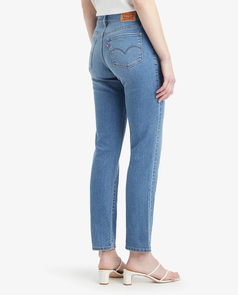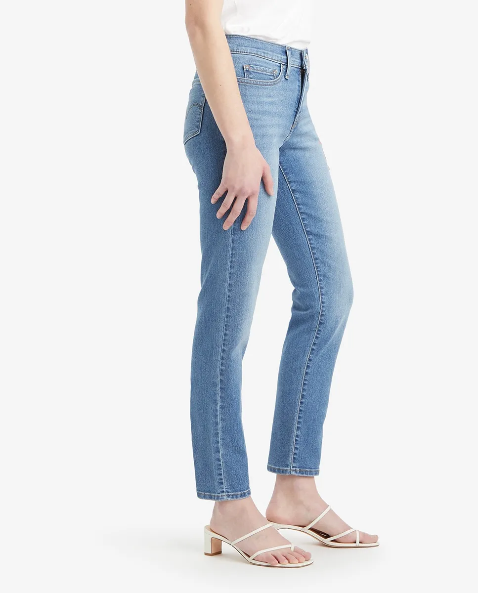 Узкие джинсы средней потертости 312. Изготовлен из эластичной ткани, которая быстро восстанавливает форму, подстраиваясь под форму тела и обеспечивая больший комфорт. Изготовлено по методу Whatever Dye, позволяющему окрашивать ткань без использования воды или обработанных химикатов. Он оснащен инновационной панелью, которая сглаживает живот и формирует изгибы. Облегает от бедра до бедра, прямой крой штанины, средняя посадка. Застежка на пуговицы и молнию.