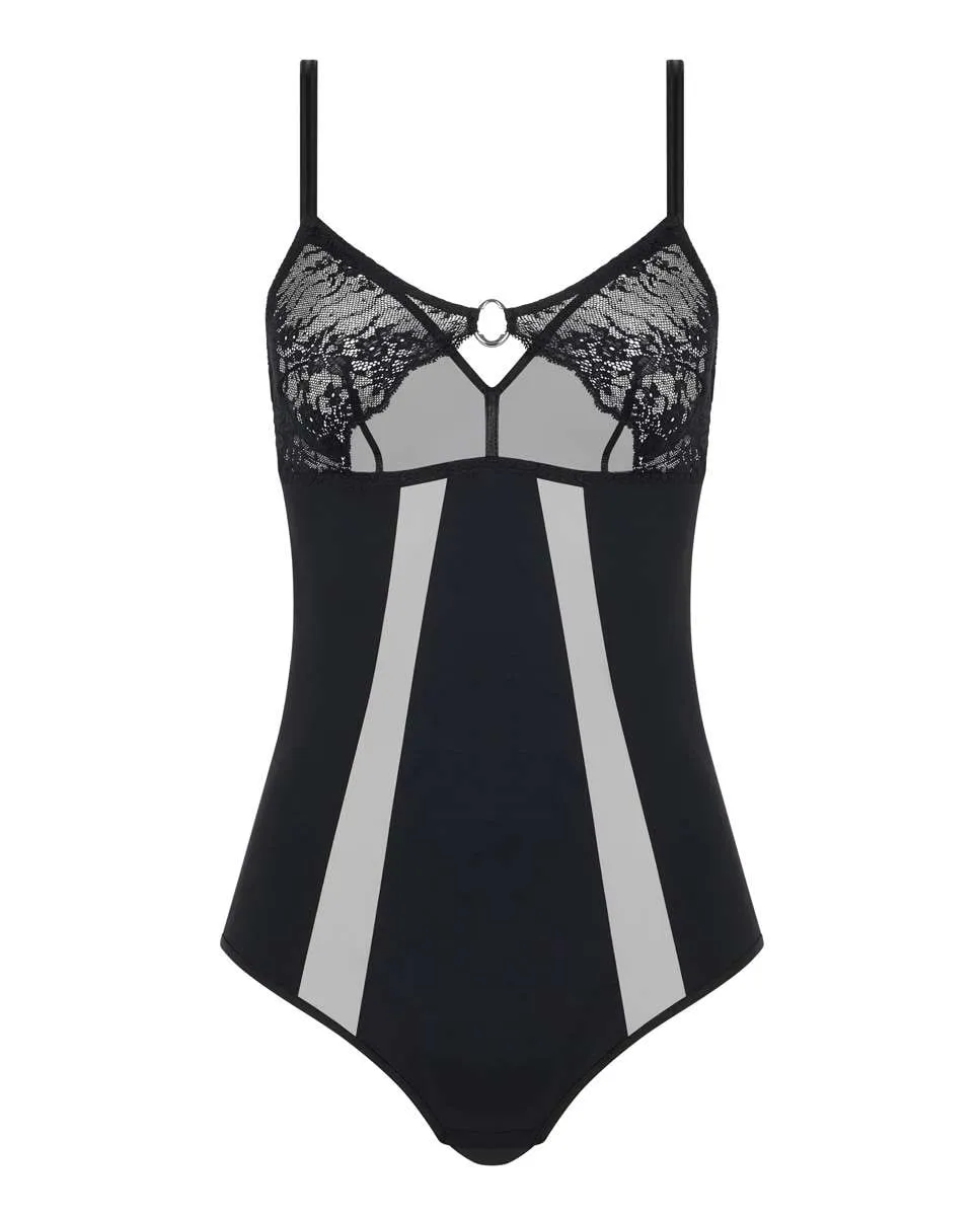 Боди из линейки Crush, создающее эффект округлой груди. Кружевные чашки с тюлем и серебряным аксессуаром между чашками. Полностью регулируемые бретели. Дизайн, сочетающий цветочное кружево с чувственными вставками из механически эластичного тюля, создает очаровательный и утонченно сексуальный образ. Разработано во Франции.