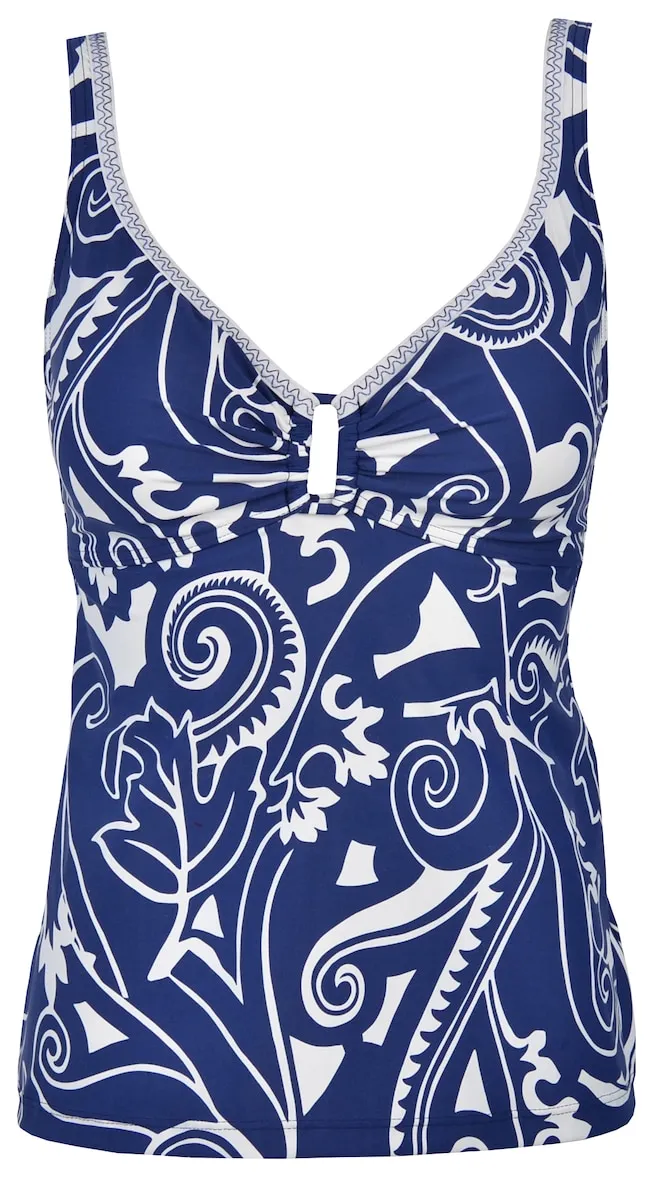 Этот мягкий верх бикини танкини с чашечкой B обеспечивает удобную и надежную посадку, идеально подходит для тех, кто ищет дополнительную поддержку, не жертвуя стилем. Регулируемые бретели гарантируют индивидуальную посадку, а монохромный принт добавит элегантности и универсальности вашему образу. Зигзагообразный ремешок придает изделию современный и изысканный вид, подчеркивая его дизайн. Этот бюстгальтер, доступный в больших размерах, идеально подходит для того, чтобы с полной уверенностью наслаждаться солнцем и морем, сочетая в себе комфорт, стиль и идеальную посадку по фигуре. Идеально сочетая с подходящей рубашкой, вы сможете создать гармоничный и изысканный наряд для купания. Трусики продаются отдельно.
