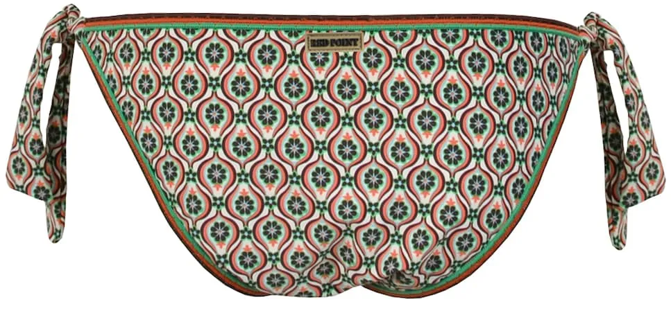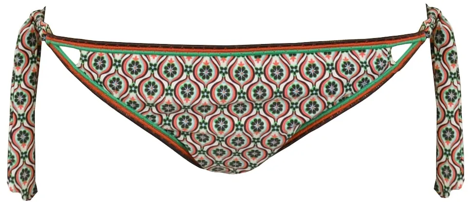 Придайте вашему образу купальника нотку свежести и молодости с этими плавками мини-бикини с бантиками! Геометрический принт в зеленых, коралловых и коричневых тонах создает уникальный и яркий дизайн, который отлично смотрится на солнце. Небольшие бантики по бокам добавляют кокетливости и шика, обеспечивая удобную и подчеркивающую фигуру посадку. Эти плавки, входящие в нашу эксклюзивную коллекцию купальников, можно комбинировать с соответствующими аксессуарами, чтобы создать идеальный стильный ансамбль. Сделайте это по-своему и наслаждайтесь летом, полным красок и уверенности в себе!