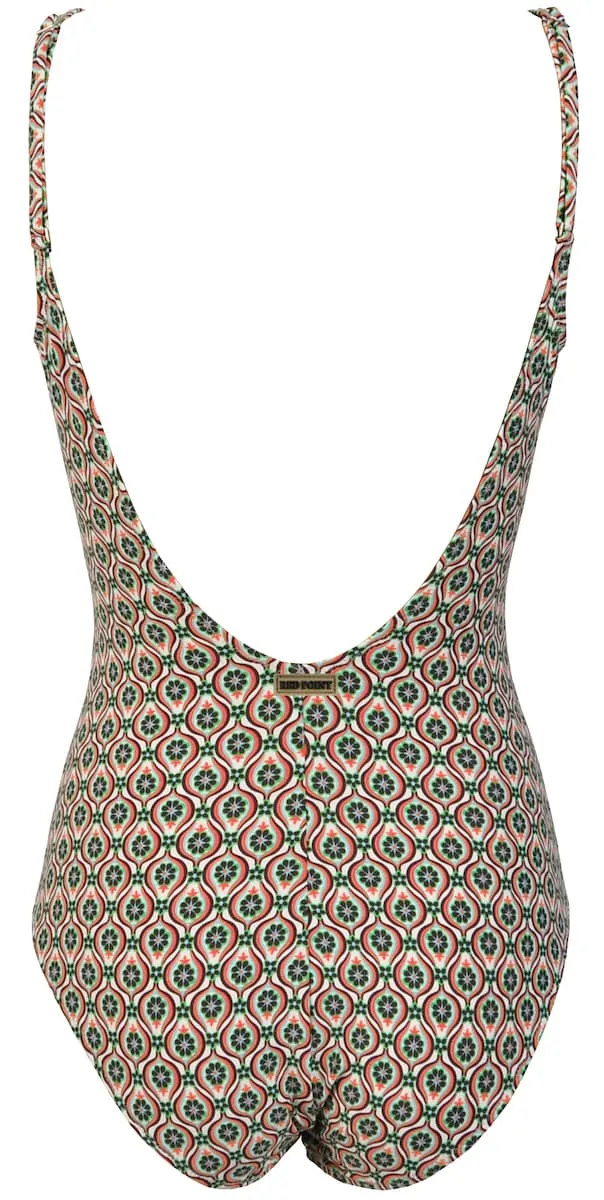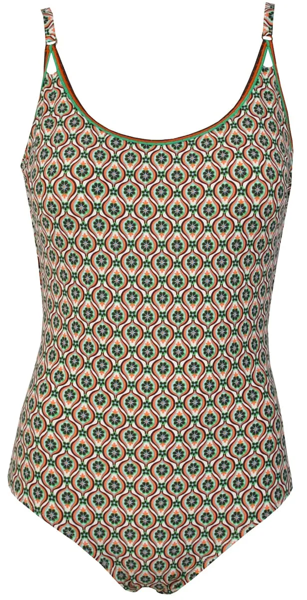 Обновите свой купальный образ с помощью этого базового купальника с чашкой B! Элегантный и молодежный дизайн дополнен геометрическим принтом в зеленых, коралловых и коричневых тонах, который придает изделию свежесть и современность. Регулируемые бретельки-спагетти обеспечат идеальную посадку, а яркий принт выделит вас среди других стильно. Этот купальник, входящий в нашу эксклюзивную коллекцию купальников, можно комбинировать с соответствующими аксессуарами, чтобы создать шикарный и гармоничный ансамбль. Сделайте это и выглядите потрясающе этим летом!