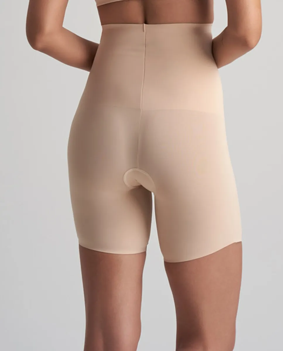 Корректирующие шорты с высокой талией и бедрами, бежевого цвета, изготовлены из микропереработанного материала. Гигиеническое хлопковое армирование и чистая ламинированная отделка. Под одеждой его будет не видно. Очень легко сочетается с любым хорошим бюстгальтером.