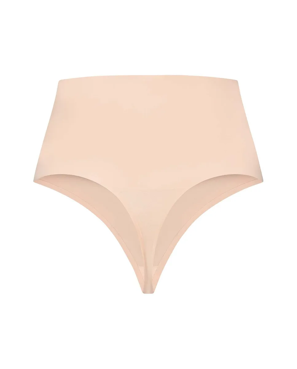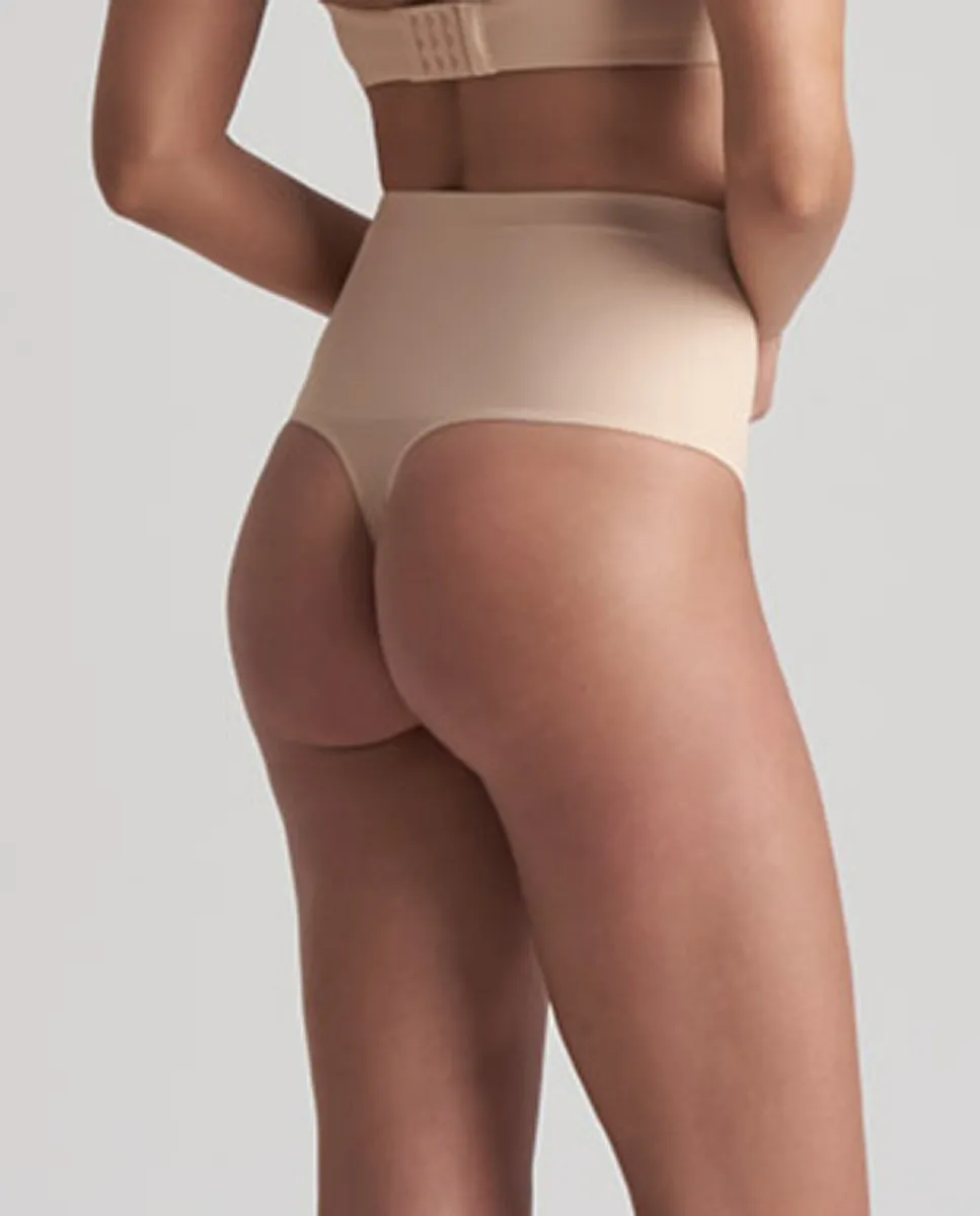 Очень прочные бежевые стринги, утягивающие и корректирующие живот. Мягкие, удобные и чистые швы. Под одеждой его будет не видно. Очень легко сочетается с любым хорошим бюстгальтером.