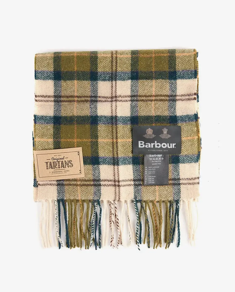 Клетчатый шарф, подходящий к вашей вощеной одежде, с узнаваемой вышивкой на конце