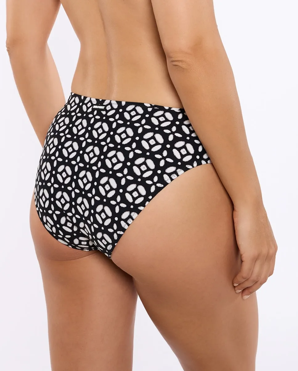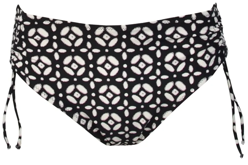 Покажите изысканный и молодежный стиль с этими классическими плавками бикини с высокой посадкой, которые элегантно подчеркнут вашу фигуру. Регулируемые боковины позволяют отрегулировать покрой по своему вкусу, обеспечивая идеальную и удобную посадку. Черно-белый геометрический принт добавляет современный и динамичный штрих, а соответствующие аксессуары дополняют этот комплект для ванной комнаты уникальным стилем. Эти трусики идеально подойдут тем, кто ищет изысканный и свежий образ. Они идеально сочетают в себе изысканность и комфорт, придавая вам уверенность и позволяя максимально насладиться моментами, проведенными под солнцем.