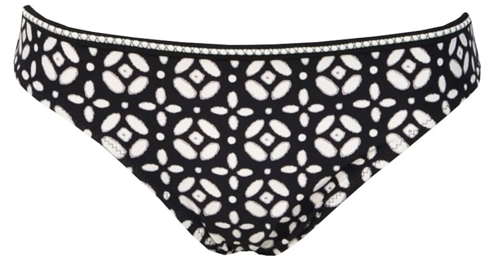 Покажите свой молодой и изысканный стиль с этими облегающими плавками бикини, которые подчеркнут вашу фигуру и придадут ей современный вид. Черно-белый геометрический принт придает изделию свежий и динамичный вид, а отделка шнуром по подолу добавляет уникальную и элегантную деталь. Эти трусики идеально подойдут тем, кто ищет купальник с изысканным дизайном. Они дополняются несколькими подходящими аксессуарами, что создает гармоничный и стильный образ. Идеально подходит для наслаждения солнечными моментами с комфортом, элегантностью и ноткой свежести.