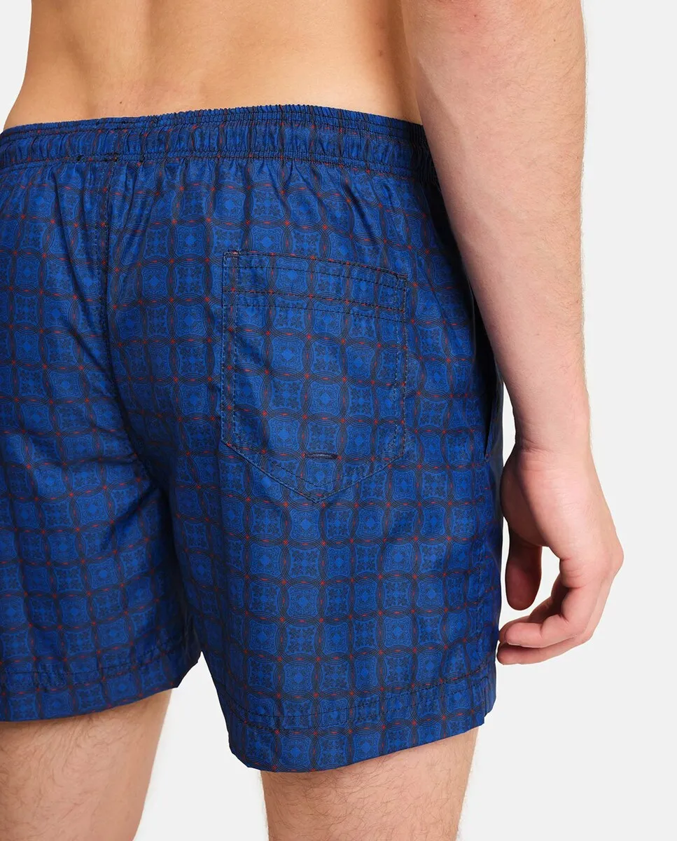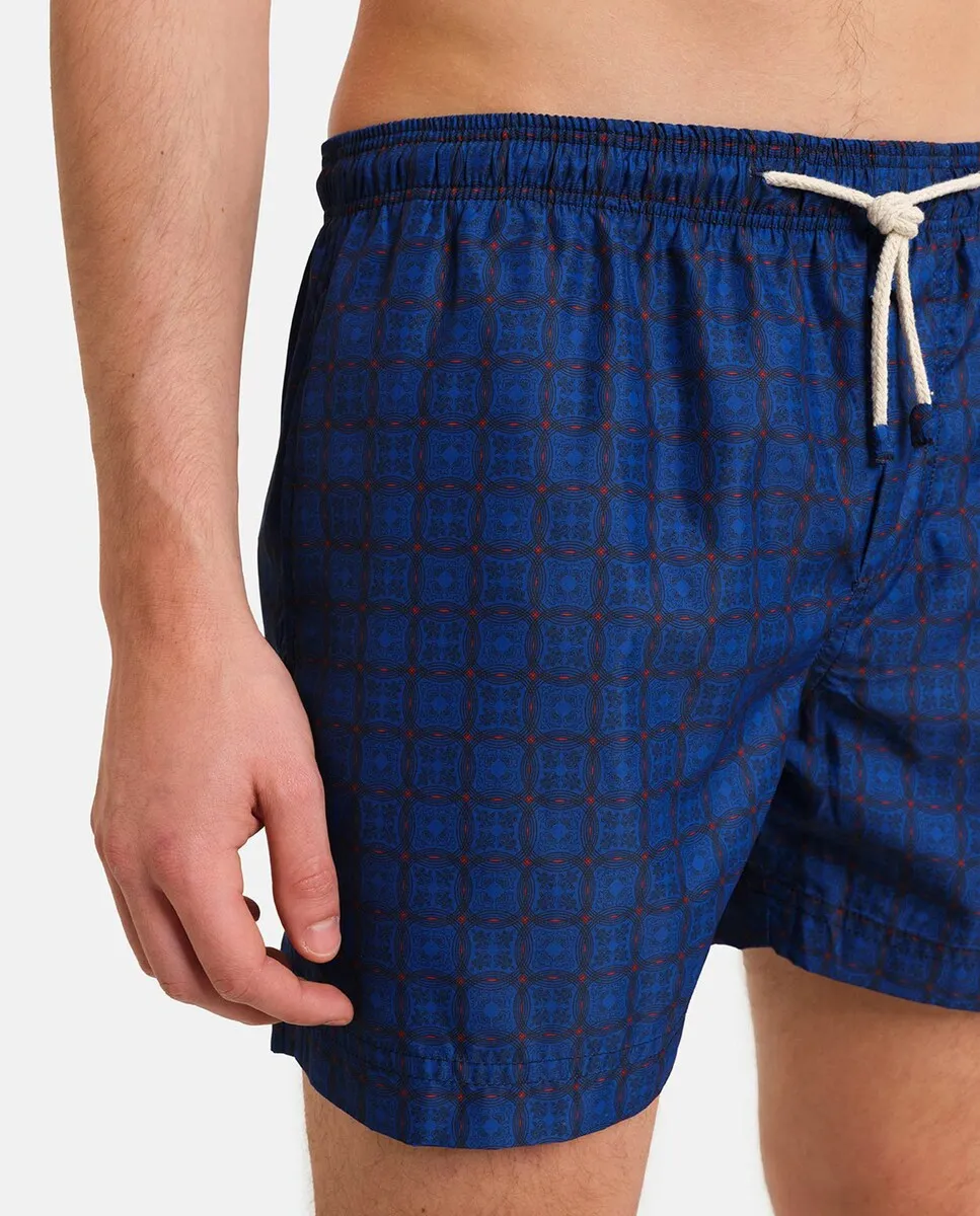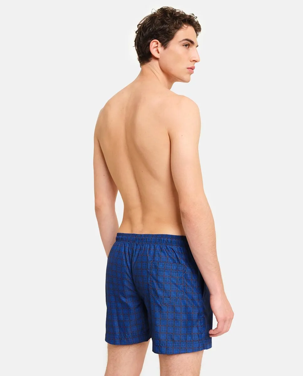 Купальник с принтом в средиземноморском стиле. Два боковых кармана с контрастной внутренней частью и мягкой сетчатой подкладкой. Тщательное внимание к деталям и непреходящая элегантность делают этот продукт уникальным. Сделано вручную в Италии.