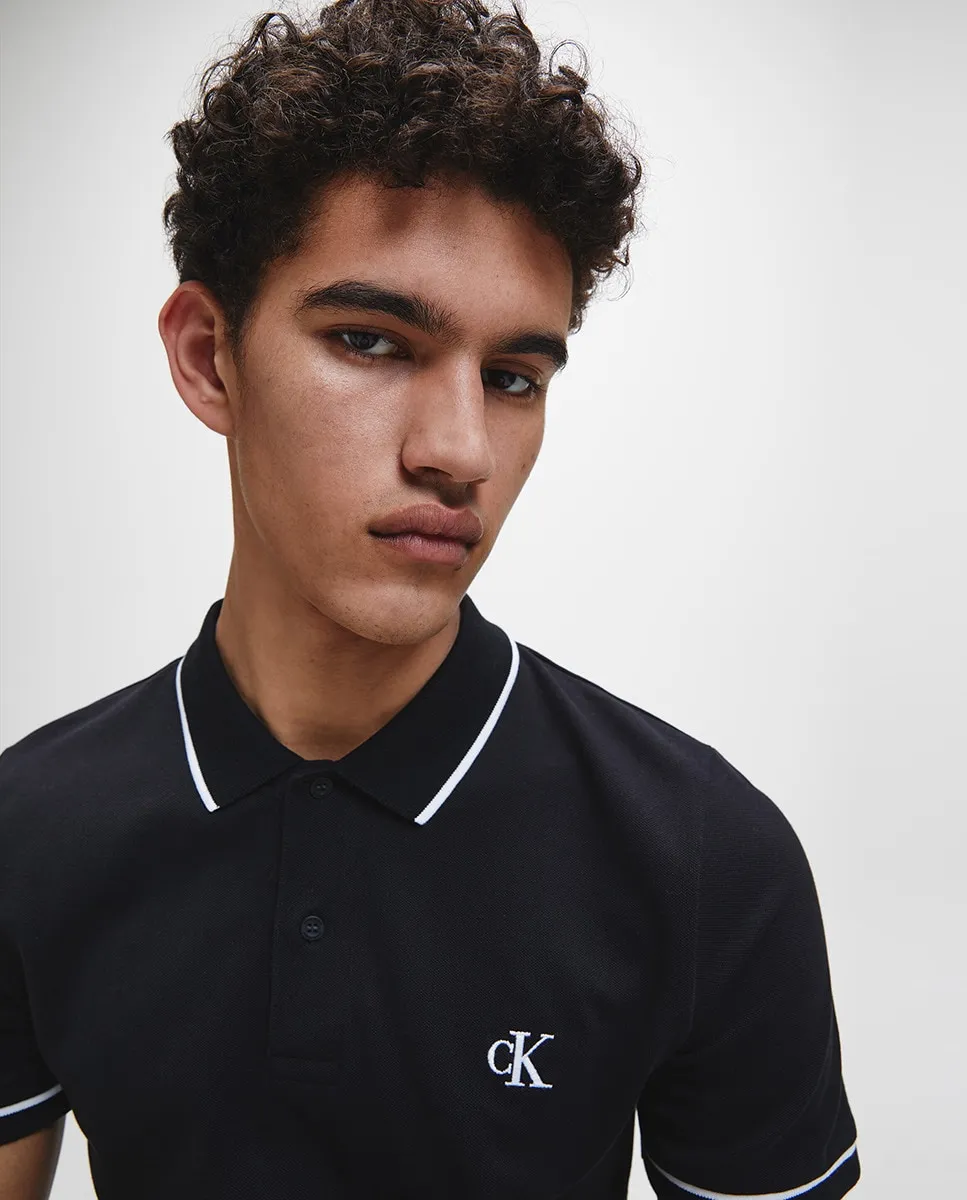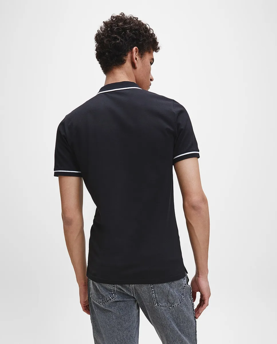 Приталенная рубашка-поло из пике черного цвета с короткими рукавами и фирменной вышивкой на груди. Контрастная отделка на горловине и рукавах. ОСНОВНЫЕ ВЕЩИ ОТ CALVIN KLEIN. Вечная одежда, которая адаптируется к современной моде и придает каждому сезону свой неповторимый колорит благодаря новым формам и цветам.
