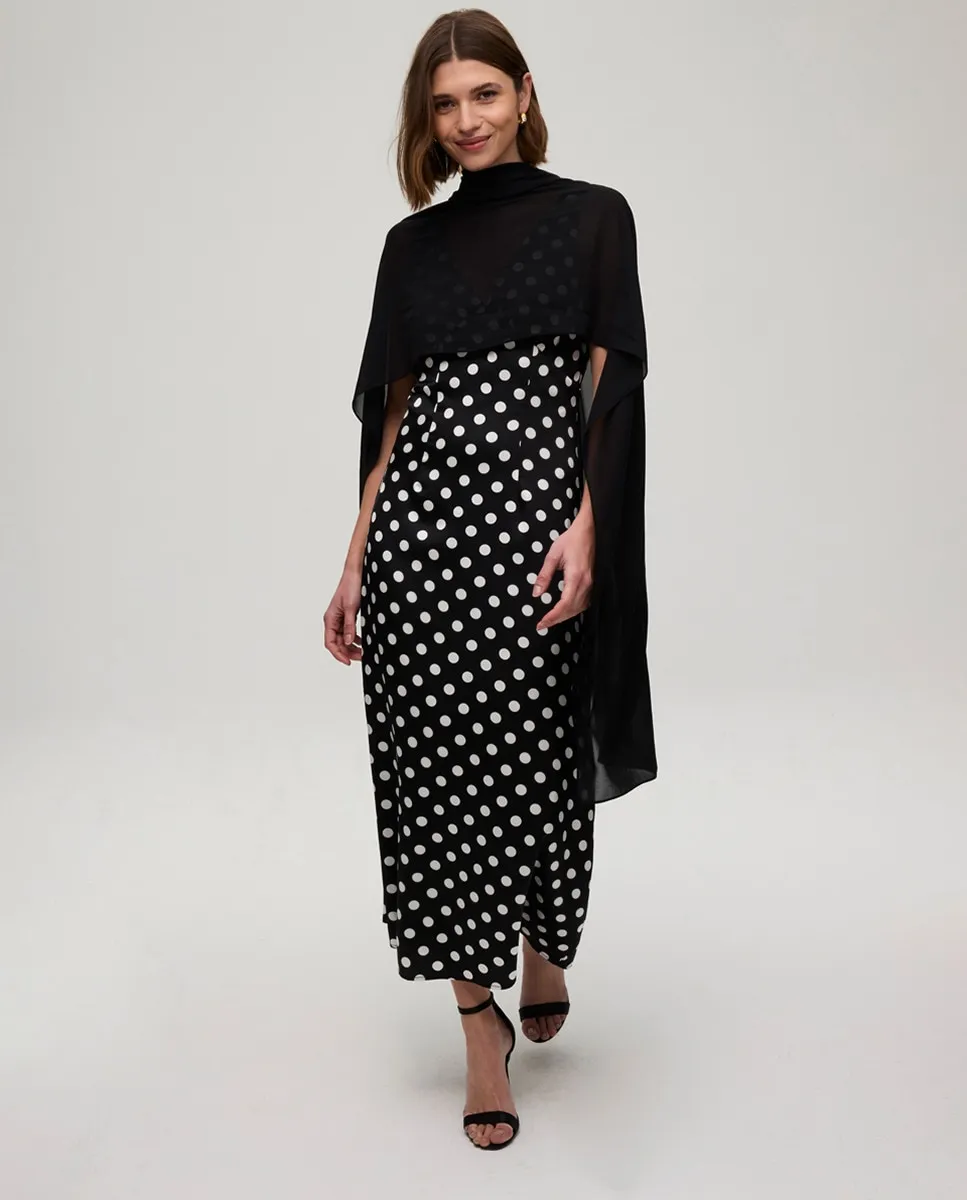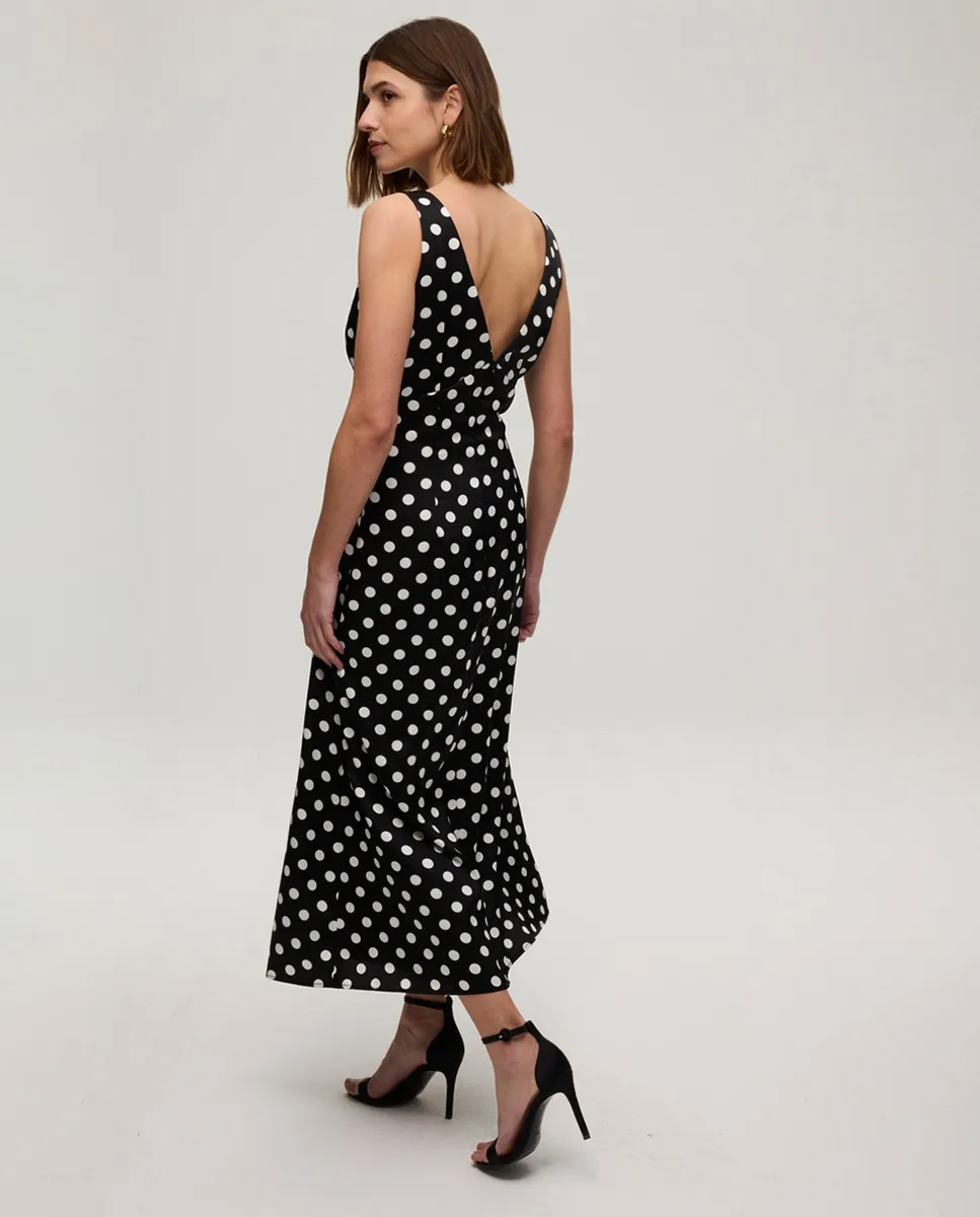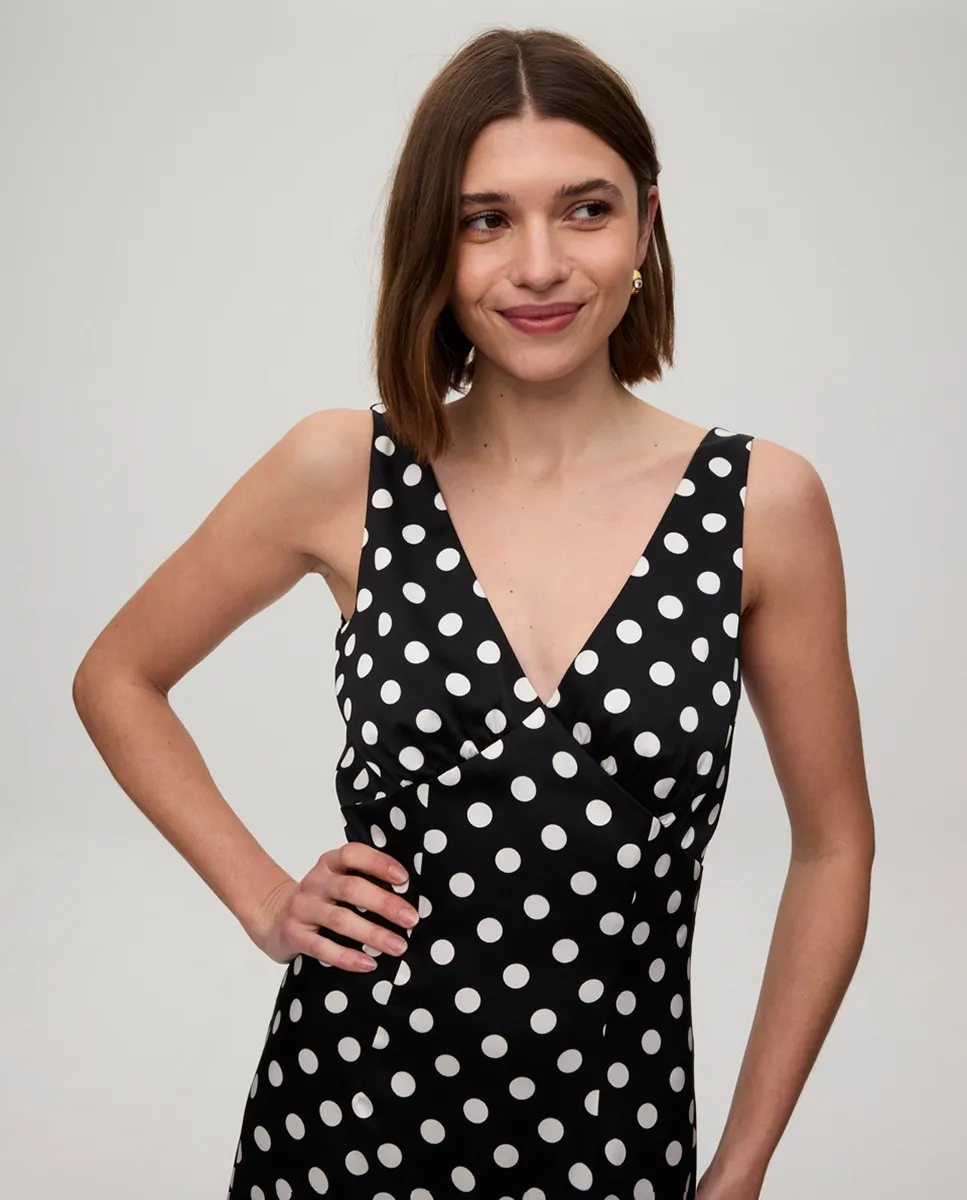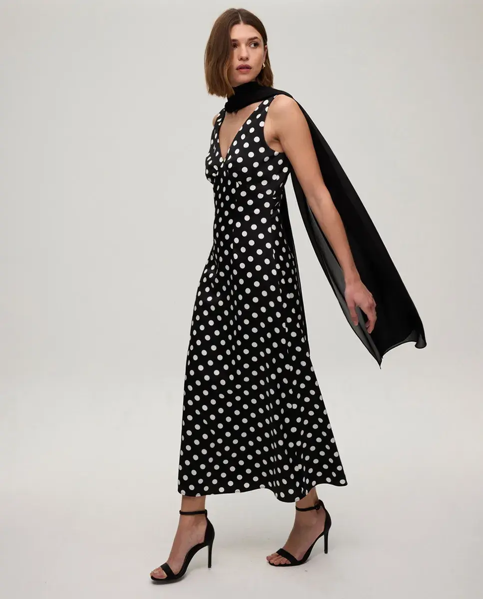 Платье миди на бретелях из ткани с принтом в горошек с подходящим шарфом идеально подойдет для гостей на свадьбах, вечеринках и мероприятиях.
