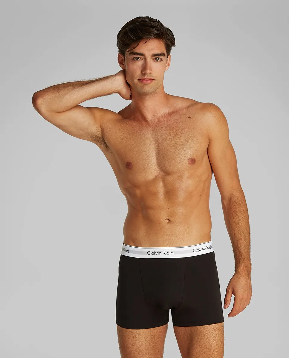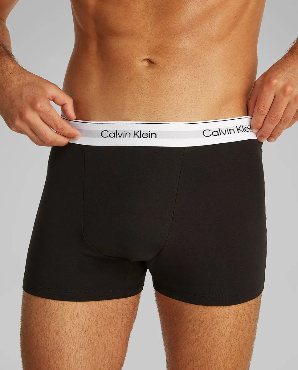 Упаковка из 3 хлопковых боксеров с характерным логотипом Calvin Klein на эластичном поясе.