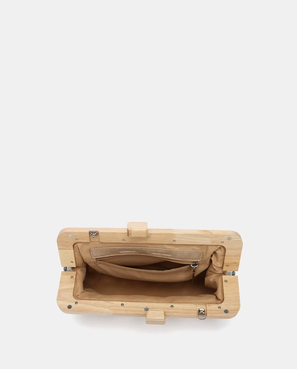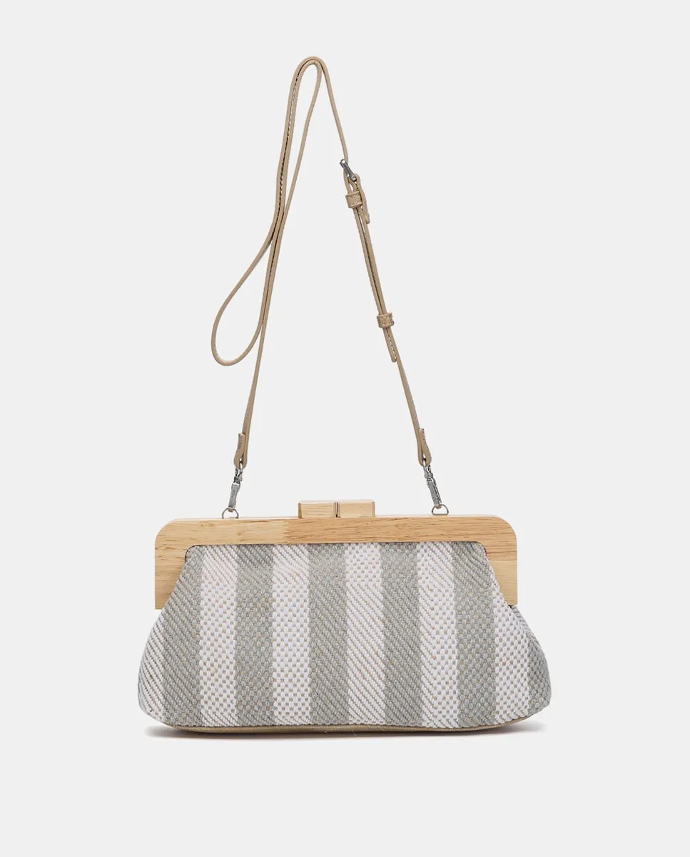 Клатч, выполненный из прекрасного сочетания ткани и дерева. Эта модель с полосатым принтом в морском стиле добавит летнюю нотку в ваш образ и идеально подойдет для особых мероприятий. Внутри полностью подкладка, имеется небольшое отделение-органайзер. В комплект входит цепной плечевой ремень и застежка сверху с мундштуком.