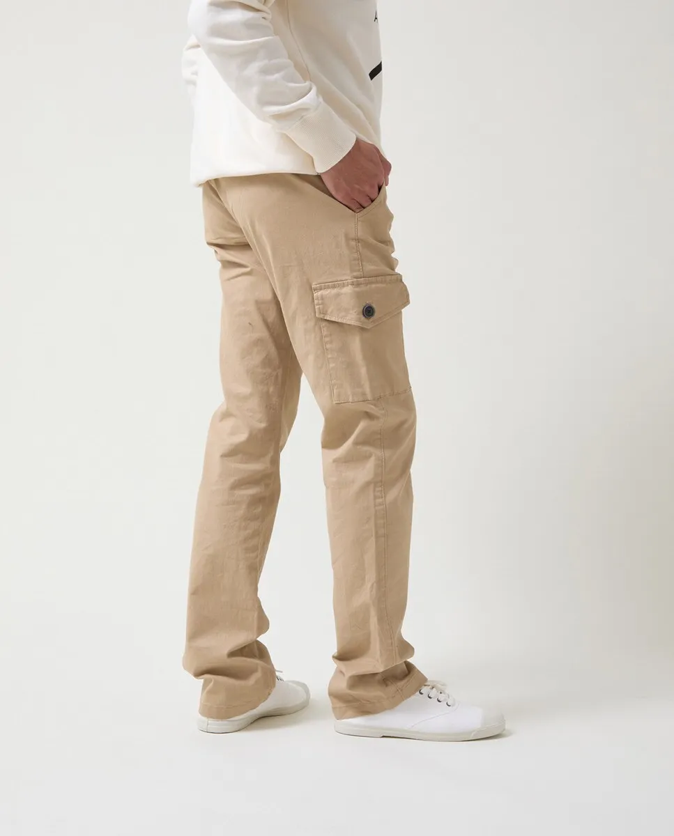 Мужские брюки-карго с бежевыми боковыми карманами.