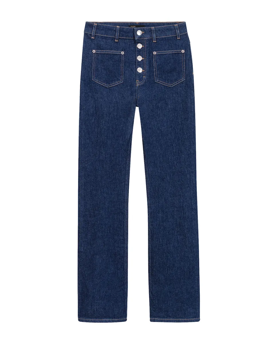 Студия представляет свою новую коллекцию, истинное отражение парижской элегантности. Элегантность и изысканность сочетаются в тонкой игре контрастов и пропорций, что придает вашему образу современный и уверенный вид. Эти джинсы из необработанного денима имеют прямой крой и контрастные швы. Они имеют высокую талию, застежку на 5 пуговиц и два накладных кармана спереди и сзади. В качестве центрального элемента вашего образа сочетайте его с вязаным джемпером, лоферами, фирменной кепкой и сумкой. Прямые джинсы из сырого денима. Средний рост. Застежка на 5 пуговиц. 2 накладных кармана спереди. 2 накладных кармана сзади. Контрастная отстрочка. Шлевки для ремня. Застежка-молния и пуговицы. Этикетка на обороте.