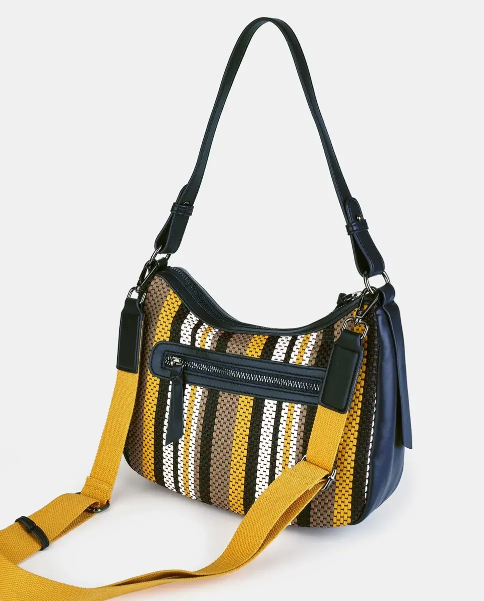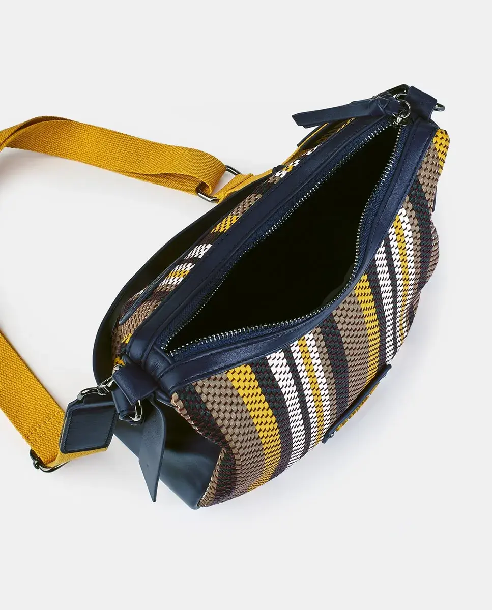 Сумка через плечо из искусственной кожи в многоцветном цвете с застежкой-молнией. Задний и внутренний карманы на молнии. Короткая съемная ручка и длинный регулируемый съемный плечевой ремень с карабином