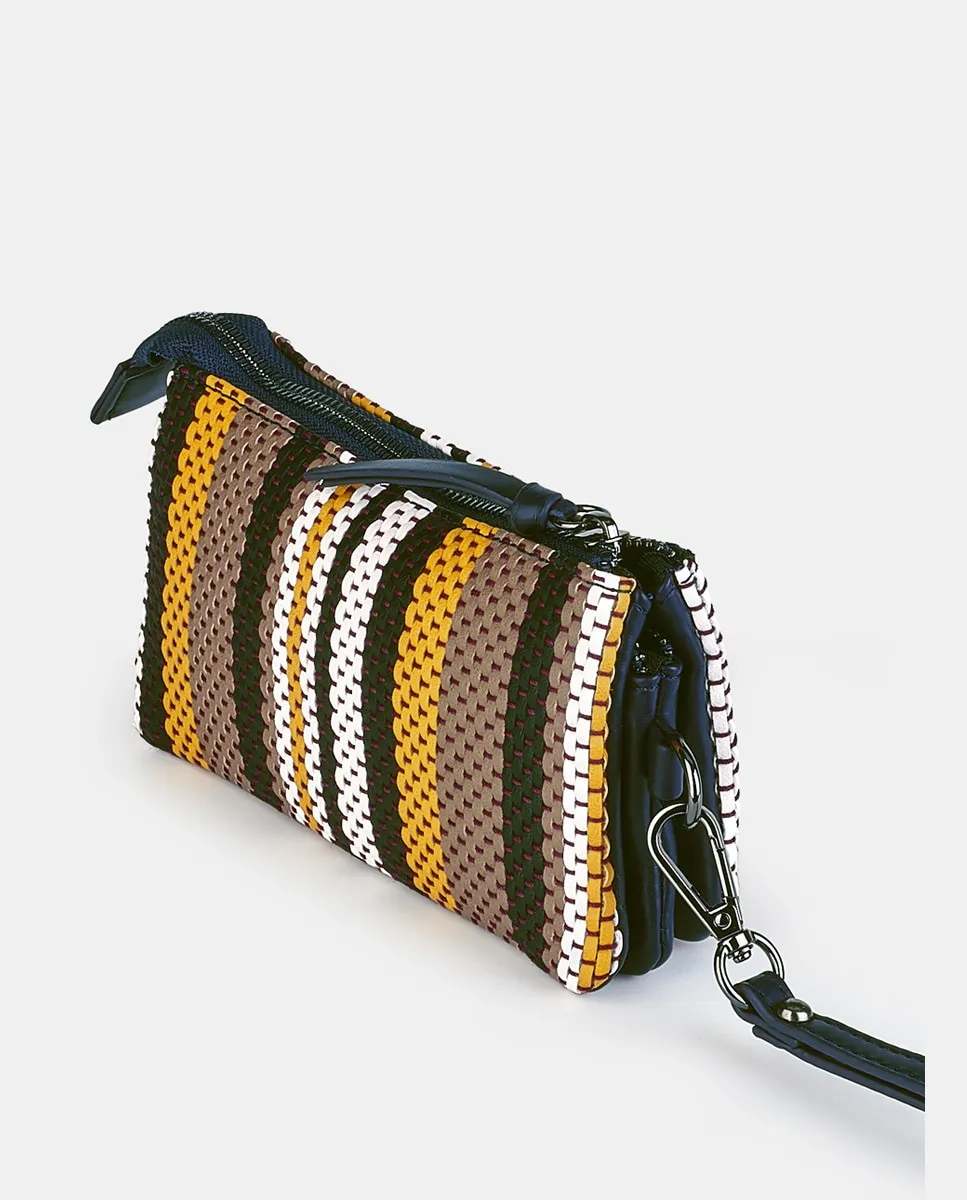 Полиуретановый мешочек с застежкой-молнией. Три отделения и короткая съемная ручка с карабином.