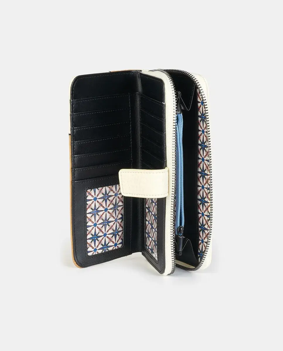 Кошелек из полиуретана в цвете мульти-деним с застежкой на кнопку и молнию