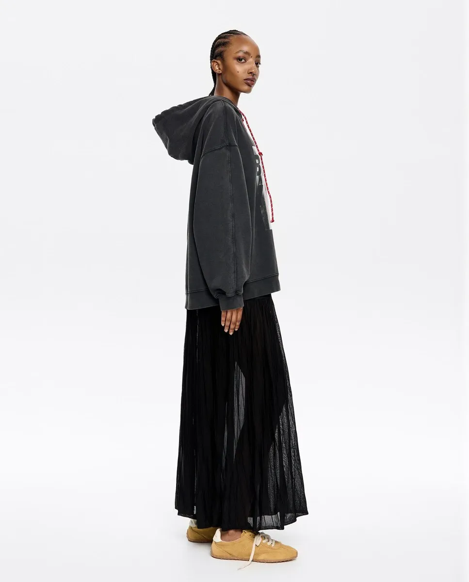 Хлопковая толстовка черного цвета. Модель свободного кроя, квадратный вырез горловины, регулируемый капюшон с индивидуальными завязками и длинные рукава с фигурной манжетой. Внешняя часть украшена фирменным фольгированным логотипом.