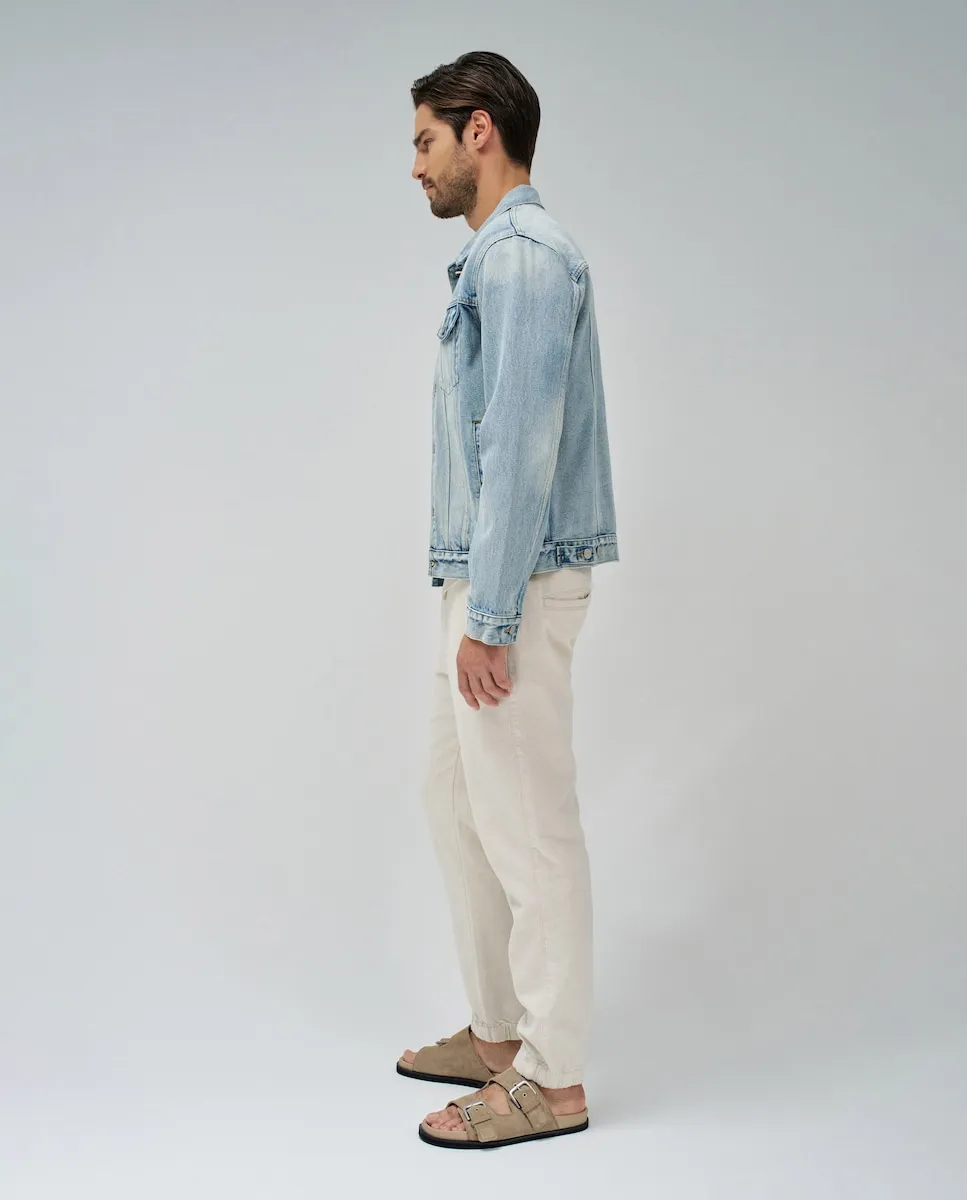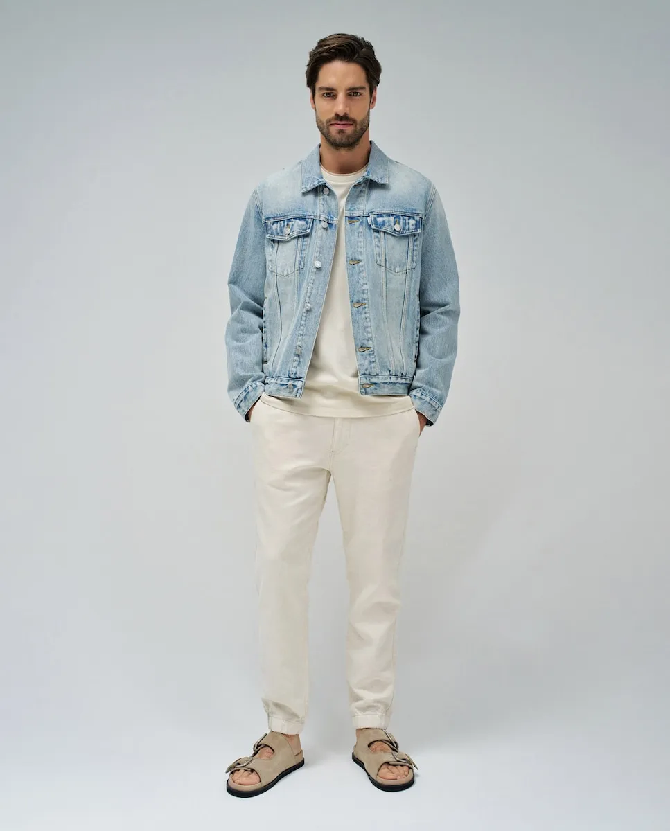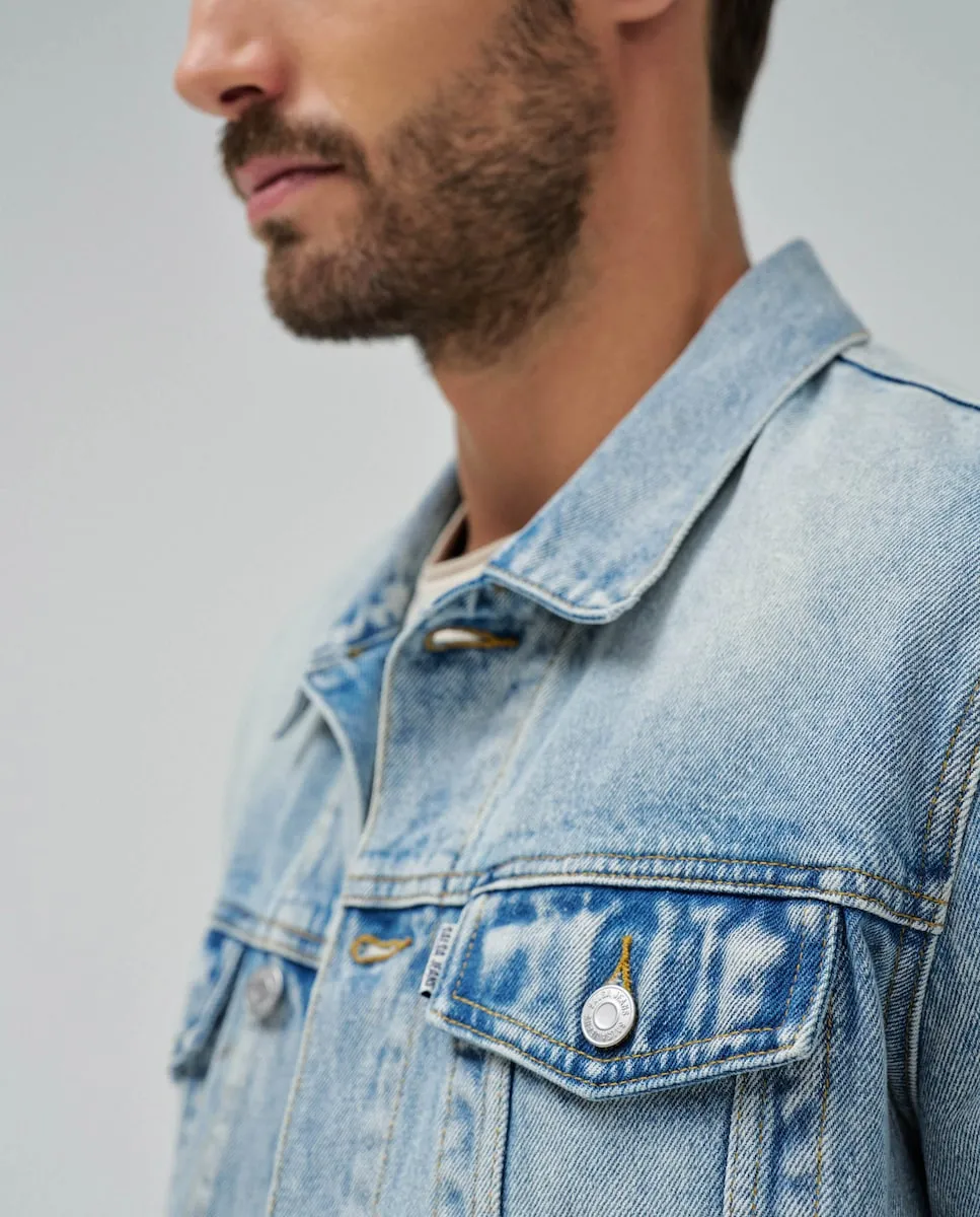 Джинсовая куртка. Синий цвет. Обычная посадка. Воротник с лацканами. Регулируемая талия с помощью пуговиц. Передняя часть застегивается на пуговицы. Пуговицы на манжетах. Шесть карманов, два из которых внутренние.