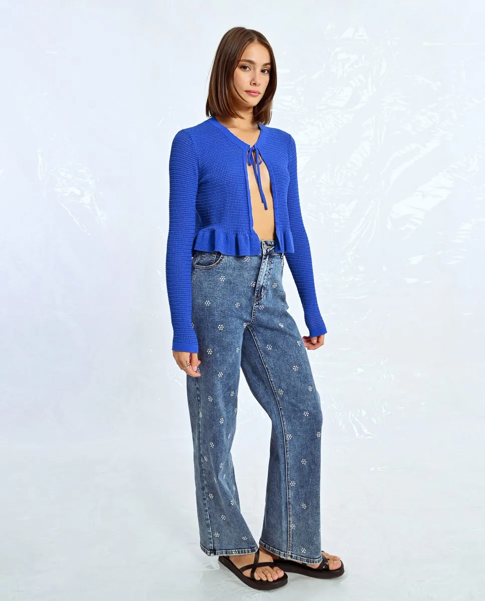 Женский кардиган с бантом и оборками Lili Sidonio, синий