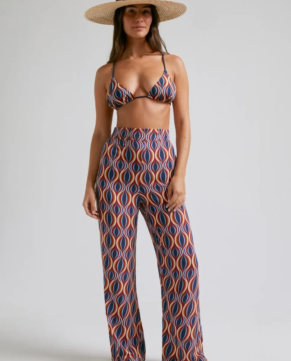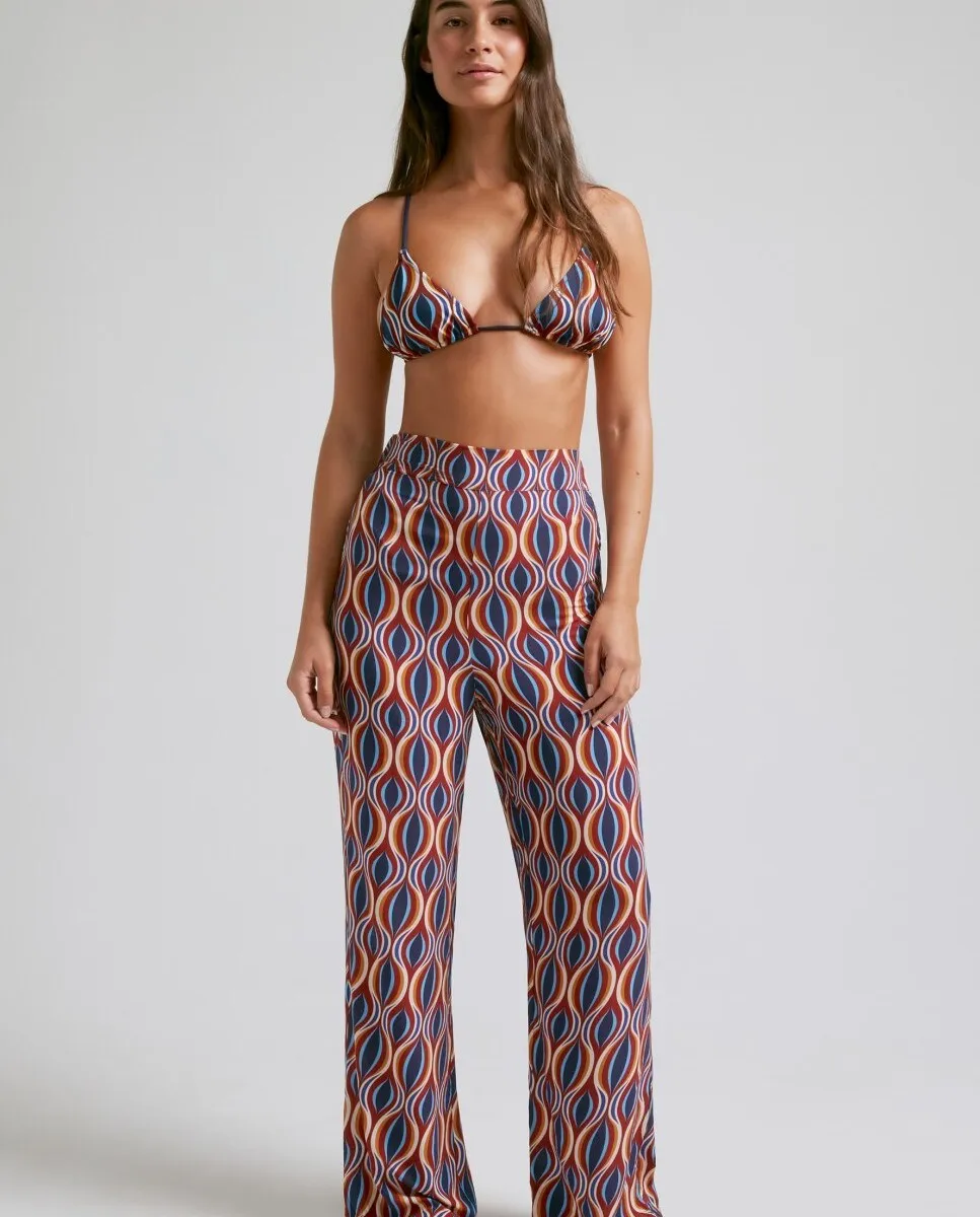 Брюки с разноцветным винтажным волнистым принтом, выполненные из мягкой и легкой вискозы. Брюки Magic Pants идеально подойдут для ношения с подходящим бикини, когда вы выходите на пляж, или с футболкой для прогулок по любимому пляжу. С фиксированной талией спереди и резинкой сзади для большего комфорта. На модели размер S/M. Ее рост 172 см, объем груди 86 см, объем талии 66 см и объем бедер 91 см.