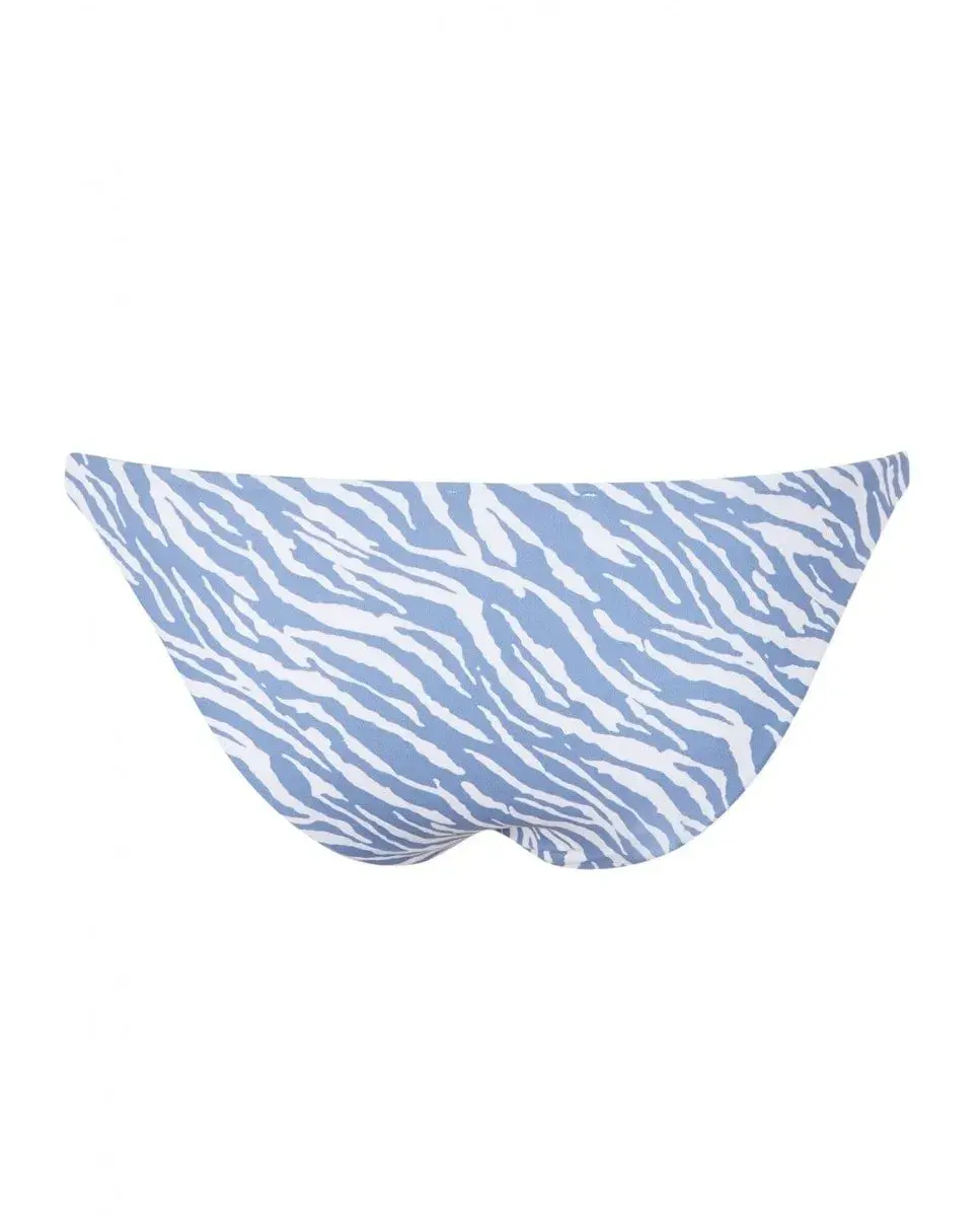 Бегунья в бикини. Цвет синий и бежевый. С принтом в виде тигра. Трусики на подкладке спереди и сзади. На модели трусики размера S. Состав: Внешняя часть: 80% полиамид, 20% эластан / Подкладка: 90% полиамид, 10% эластан.