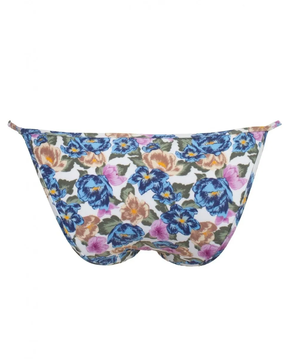 Отделка нижней части бикини. Натуральный цвет с голубоватым цветочным принтом. На модели трусики размера S. Состав: Внешняя часть: 80%Pa, 20%Ea / Подкладка: 90%Pa, 10%Ea.