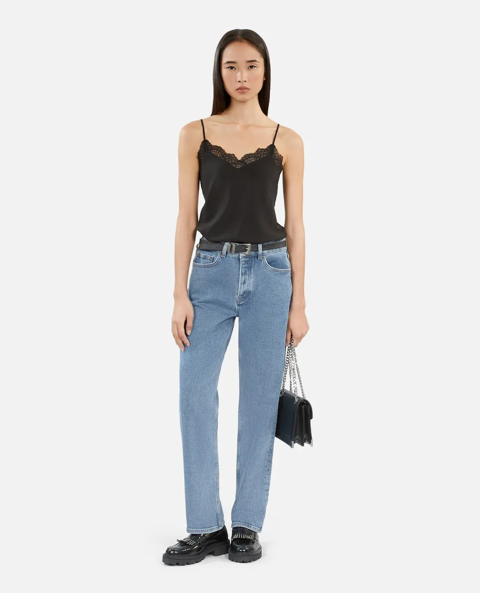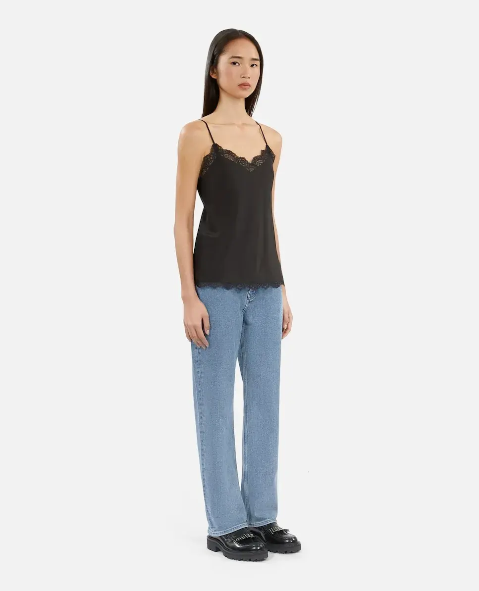 Женский шелковый топ с кружевом The Kooples, черный 21 917₽
