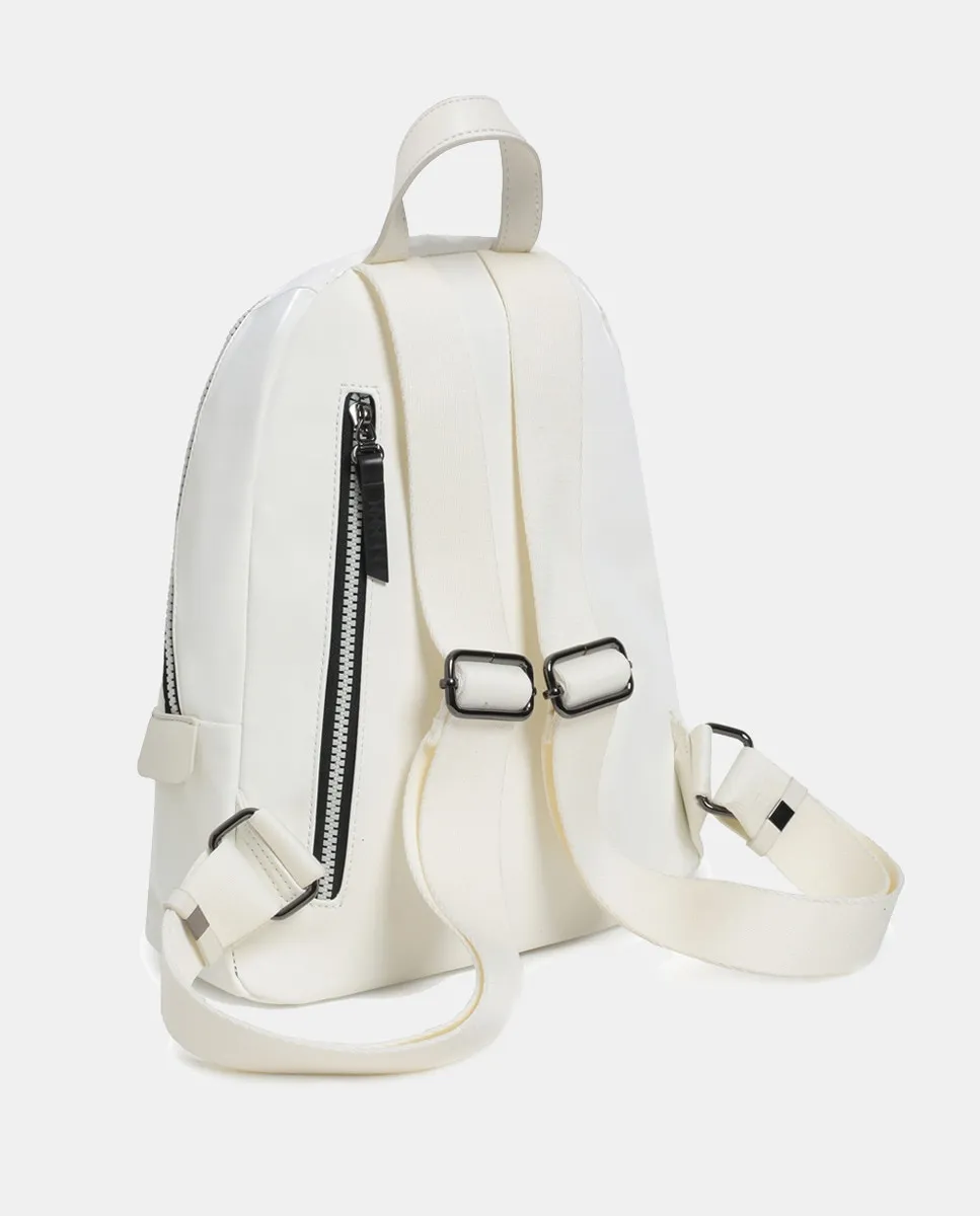 Рюкзак из белой технической ткани, ручка и регулируемые плечевые ремни, застежка-молния, 2 внутренних кармана и 3 внешних кармана.