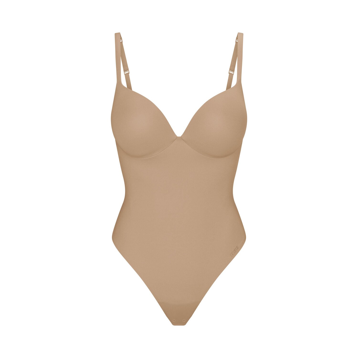 Получите культовый силуэт SKIMS за один шаг. Это боди-стринги с глубоким вырезом сочетает в себе нашу фирменную ткань SKIMS Bodycontouring с нашей вирусной технологией Ultimate Bra для вашей лучшей груди и тела. Премиальные каплевидные подушечки из пеноматериала создают безупречный подъем, форму и полноту, а подкладка из сетки Power Mesh в центре и на талии моделирует и подчеркивает вашу фигуру. Имеет мягкие скрытые косточки и регулируемые бретели для поддержки. Завершено кнопками на ластовице и силиконовым логотипом. Для лучшей посадки ознакомьтесь с нашим руководством по размеру.
