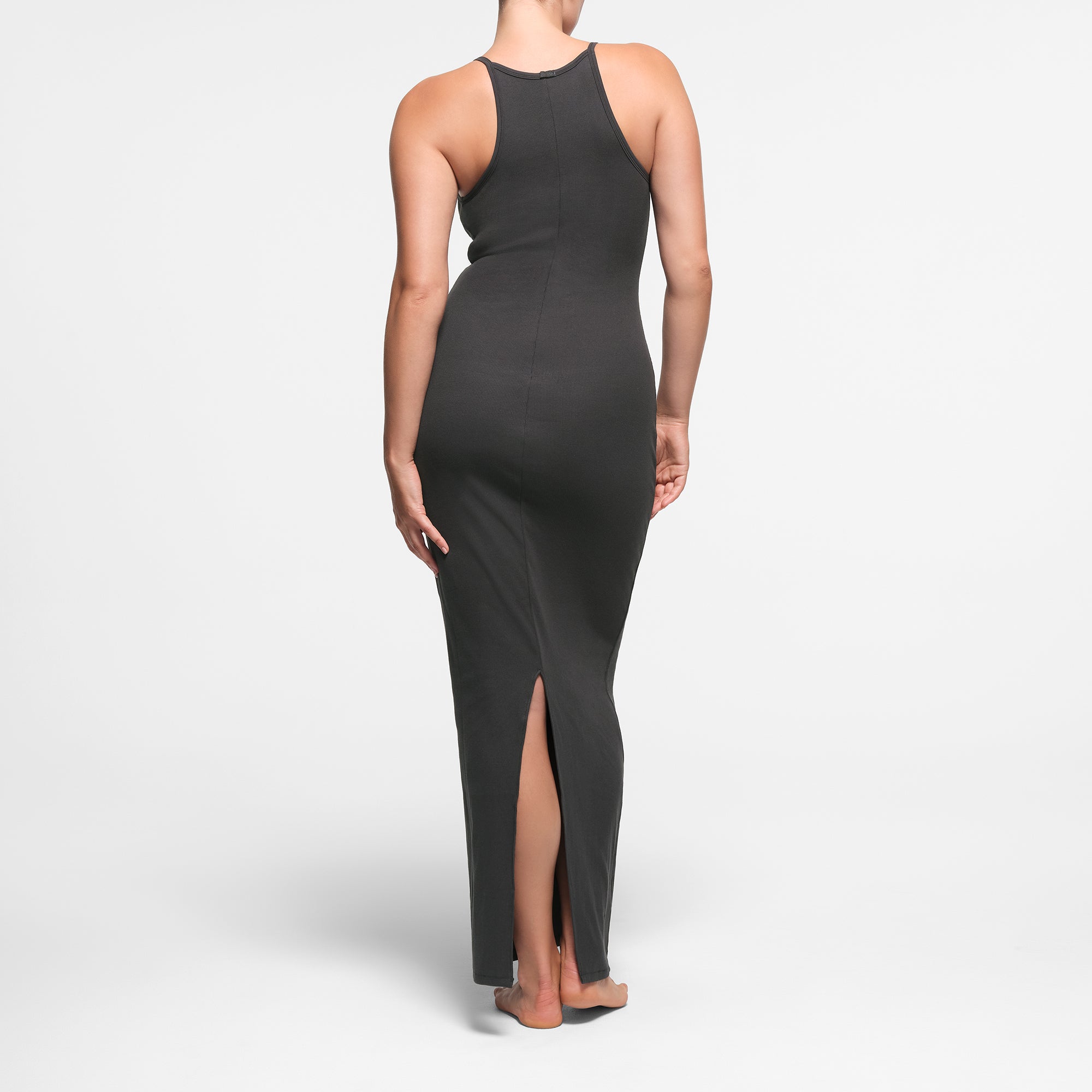 Хлопокникогда не выглядел так шикарно. Этот универсальный, приталенный силуэт выполнен из нашей мягкой ребристой ткани, которая дышит и удобно облегает ваше тело. Имеет шикарный круглый вырез, изящную спинку-борцовку с логотипом SKIMS и гладкую окантовку вдоль лямок и пройм. Подол во всю длину имеет разрез сзади по центру для удобства ходьбы. Соответствует размеру.