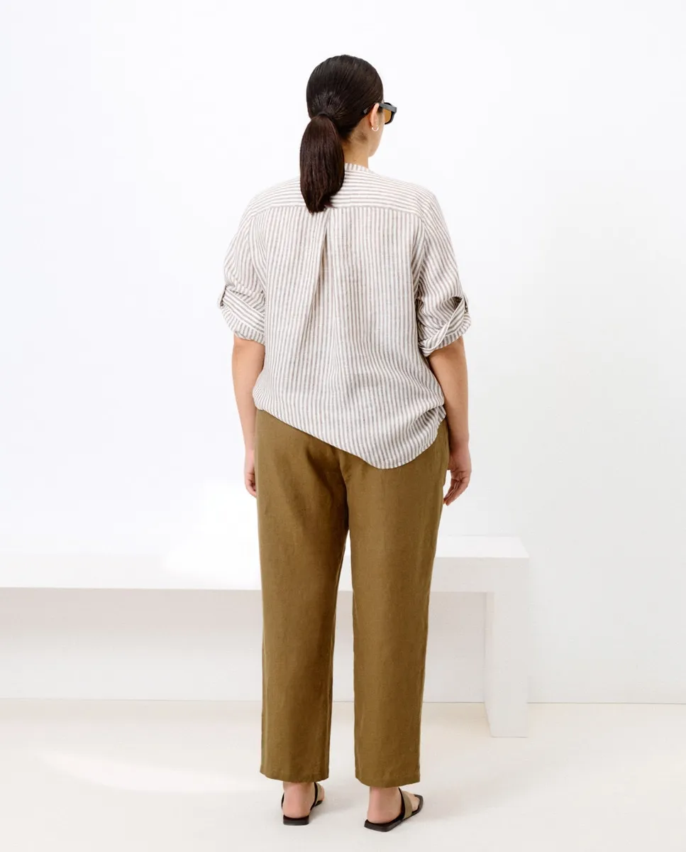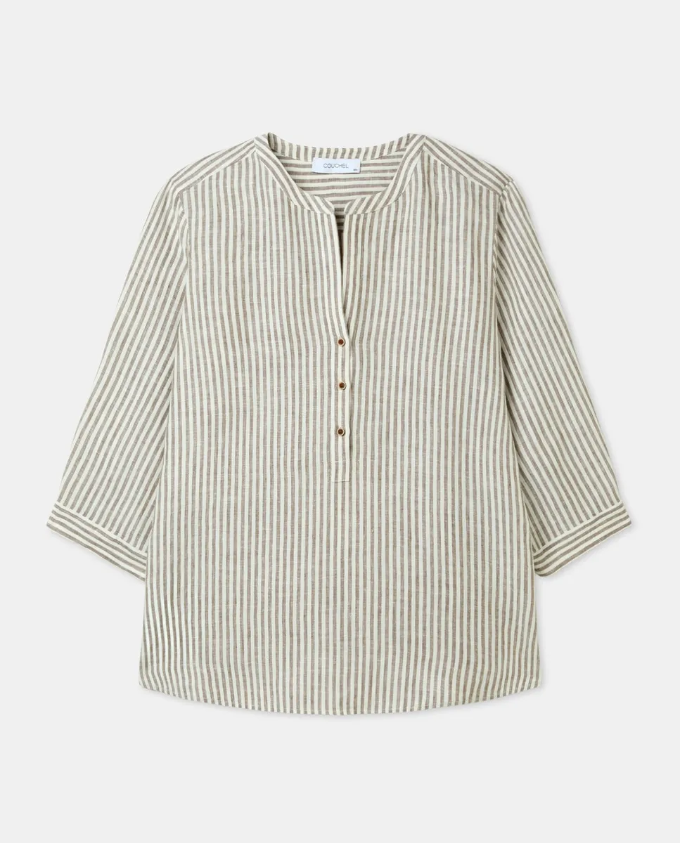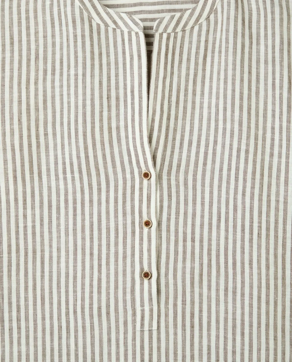 Блузка из 100% льна, полосатый рисунок и французские рукава.