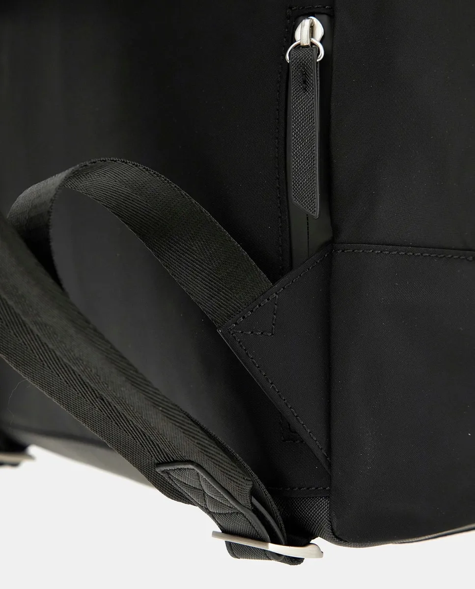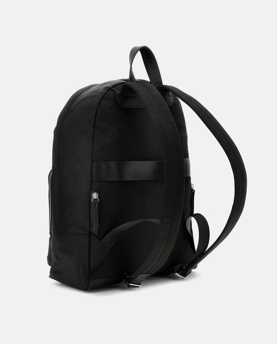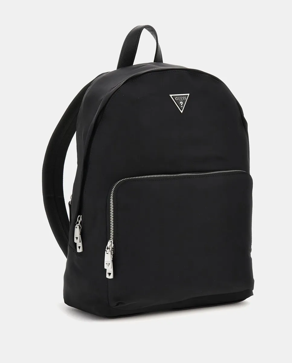 Компактный рюкзак Milano с застежкой-молнией, серебристым металлическим треугольным логотипом спереди, одним основным отделением с закрытой молнией, в которое можно положить устройства размером до 15 дюймов, одним передним карманом с металлической молнией и двумя потайными задними карманами с молнией.