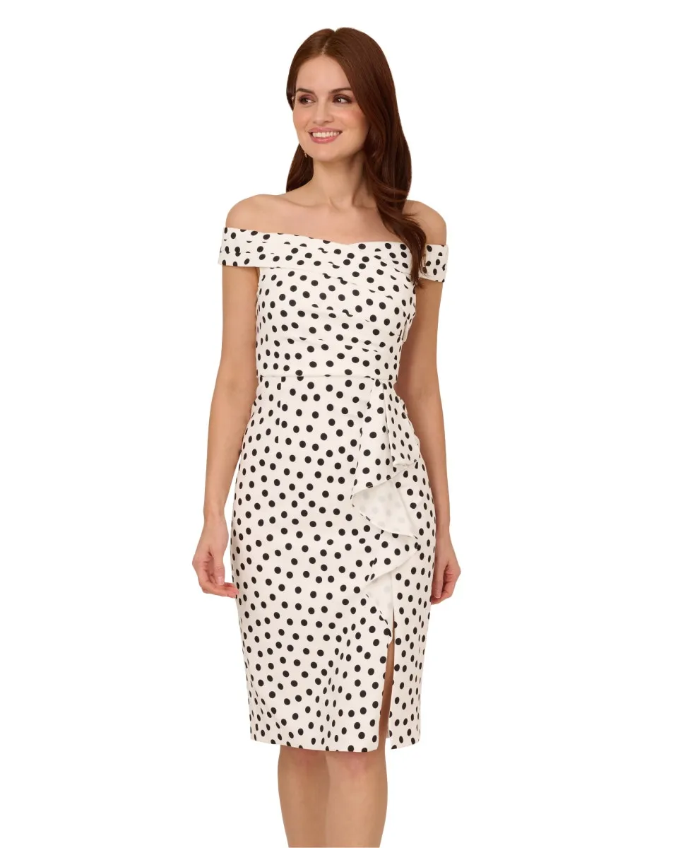 Это мини-платье без рукавов украшено принтом в горошек по всей поверхности, что создает милый и в то же время классический образ. Плиссированные детали на спущенных бретелях и драпированный акцент на передней части юбки придают дизайну объем и фактуру. Застежка-молния сзади обеспечивает приталенный силуэт. Это платье станет правильным выбором для любого случая, требующего веселого и праздничного стиля.