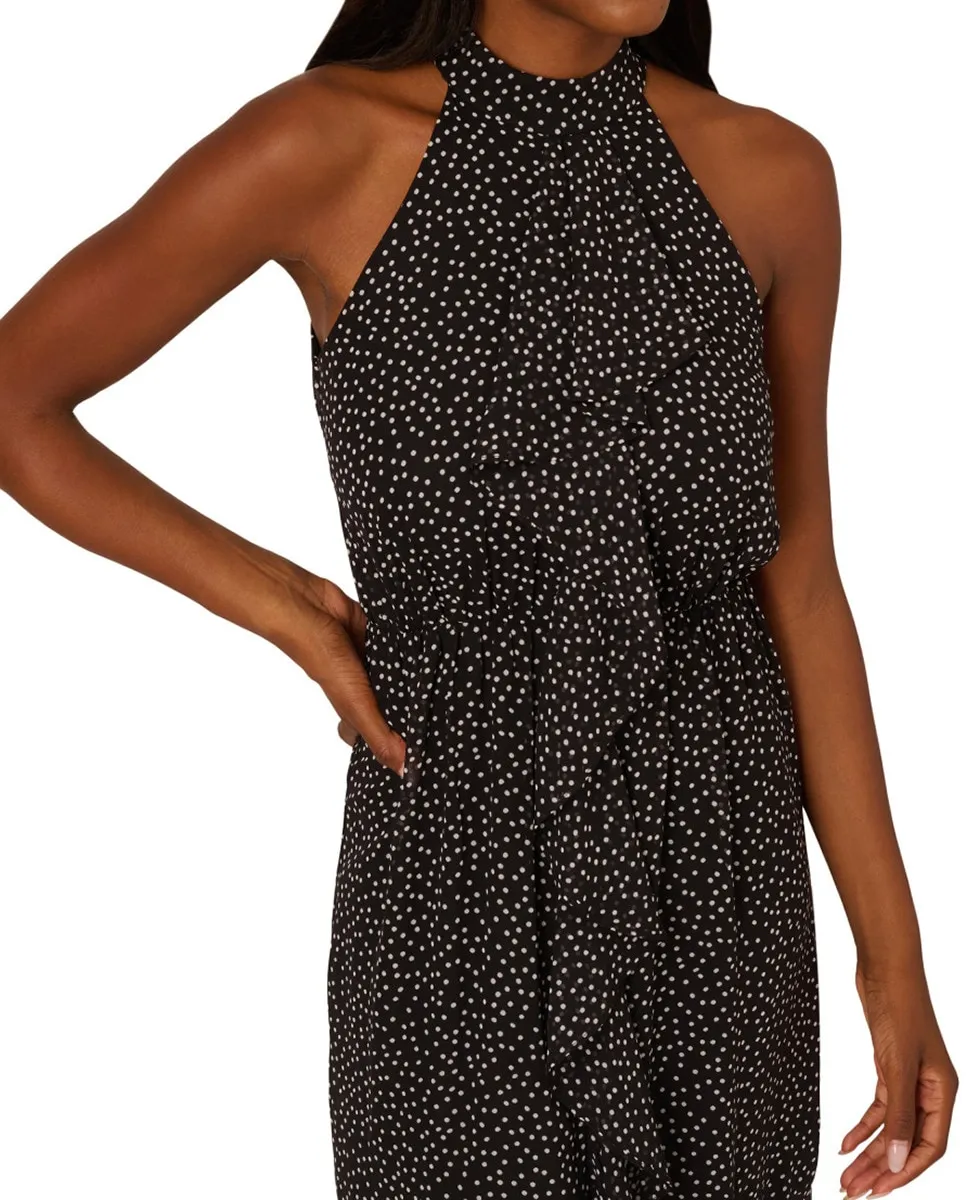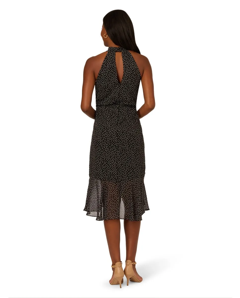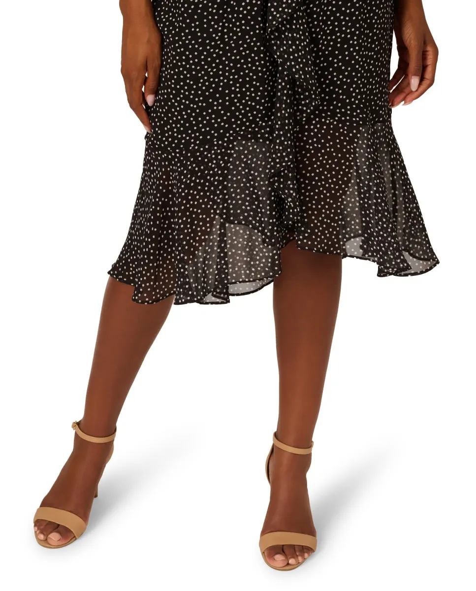 Платье миди из шифона с рюшами в горошек Adrianna Papell, черный