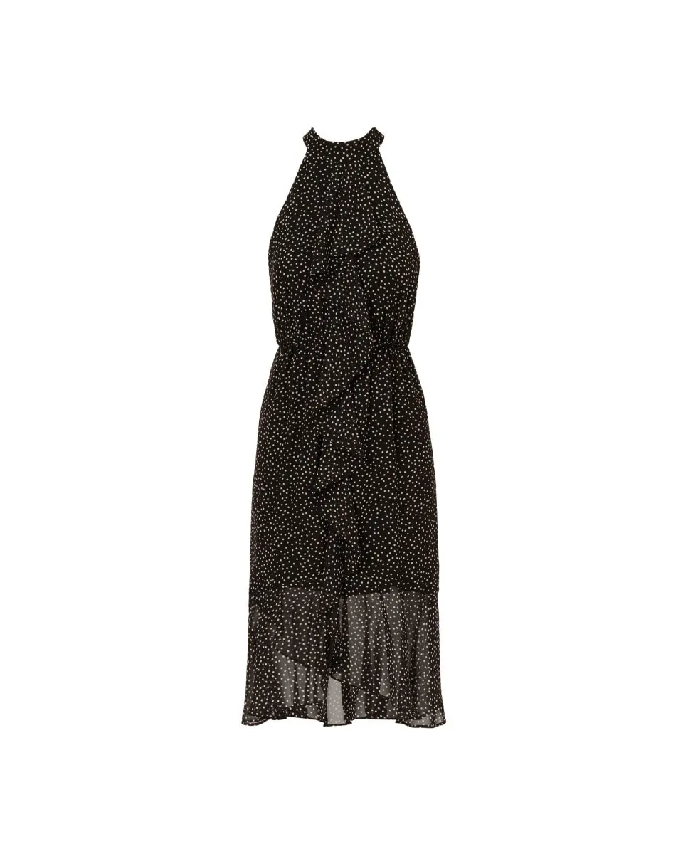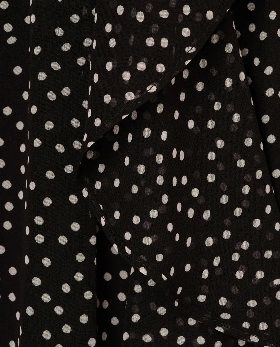 Платье миди из шифона с рюшами в горошек