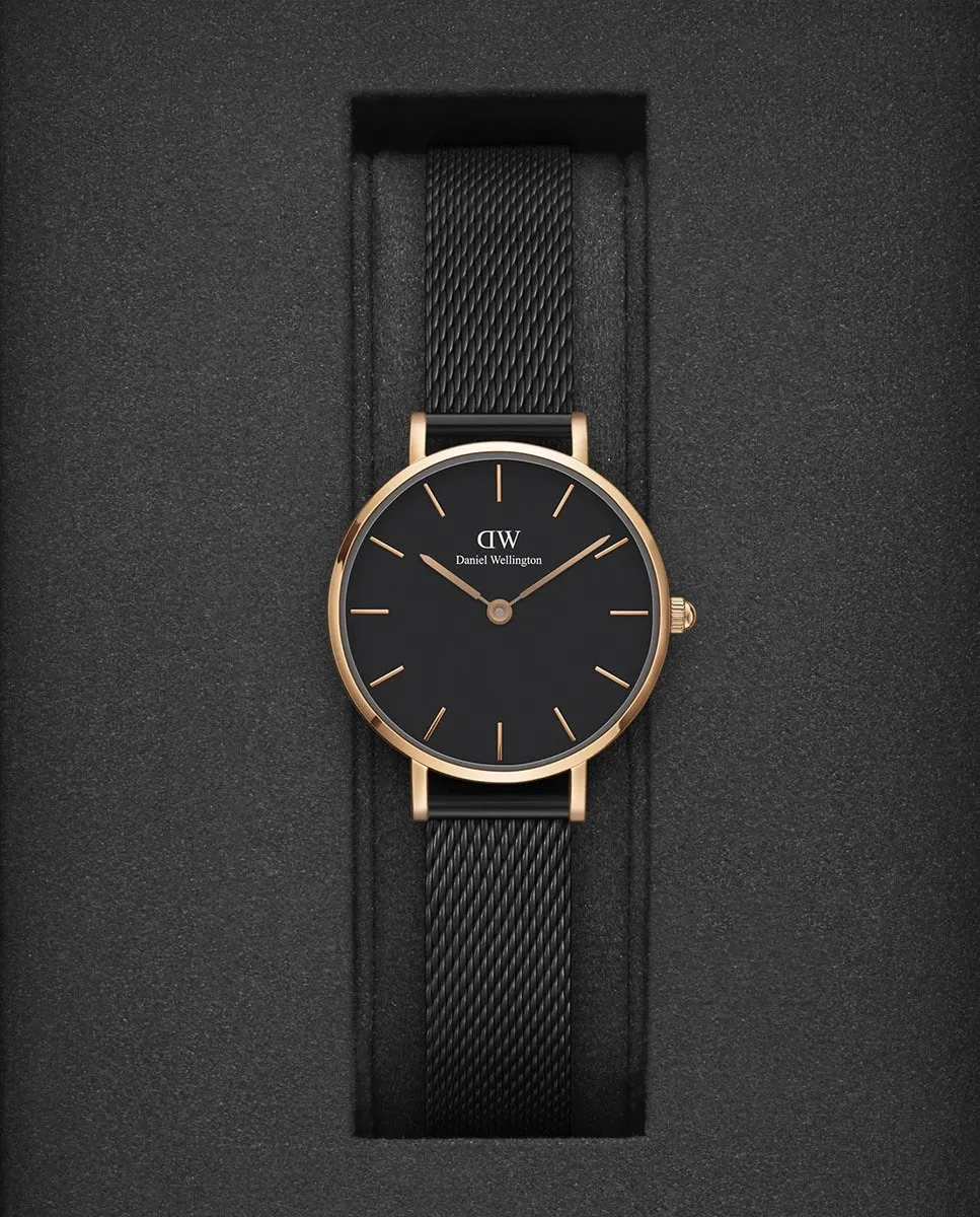 Женские часы Petite Mesh DW00100245 в черном стальном сеточном корпусе Daniel Wellington, черный