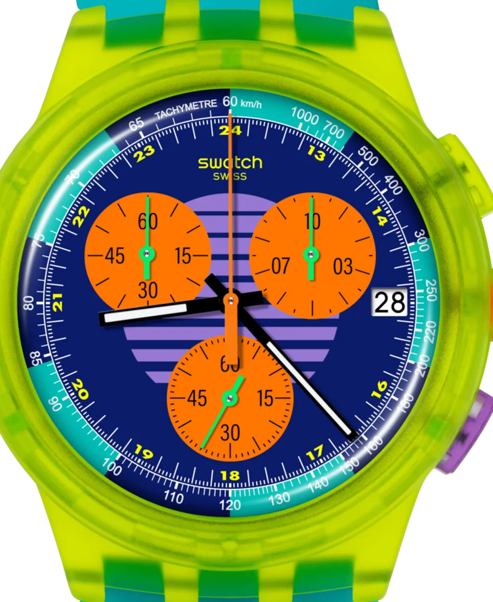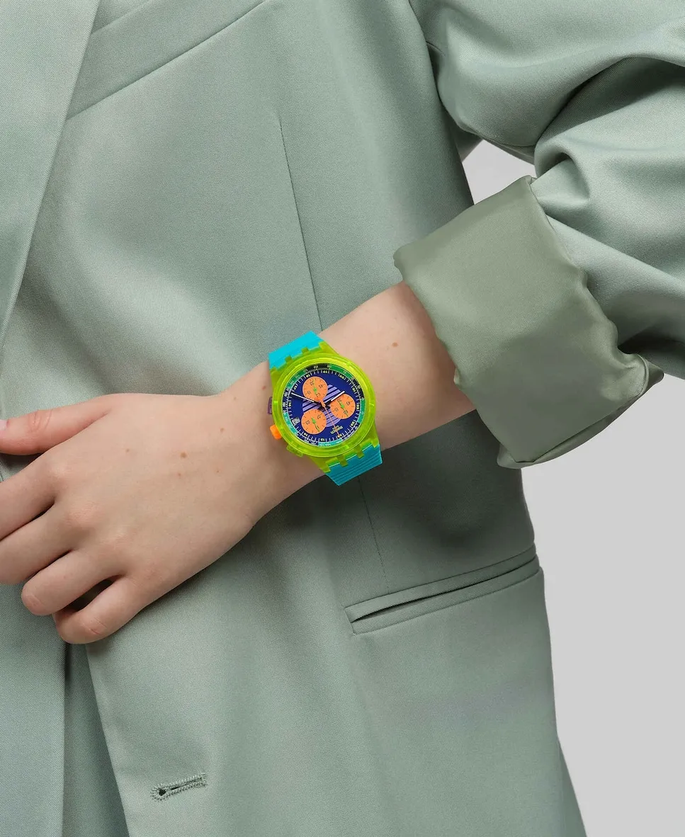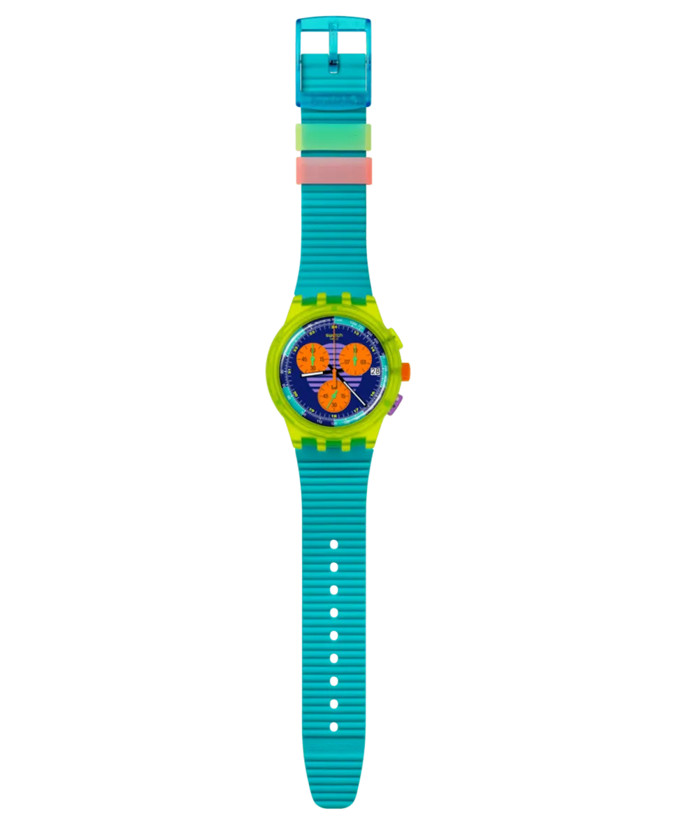 Часы унисекс Swach Neon Wave синего цвета из пластика