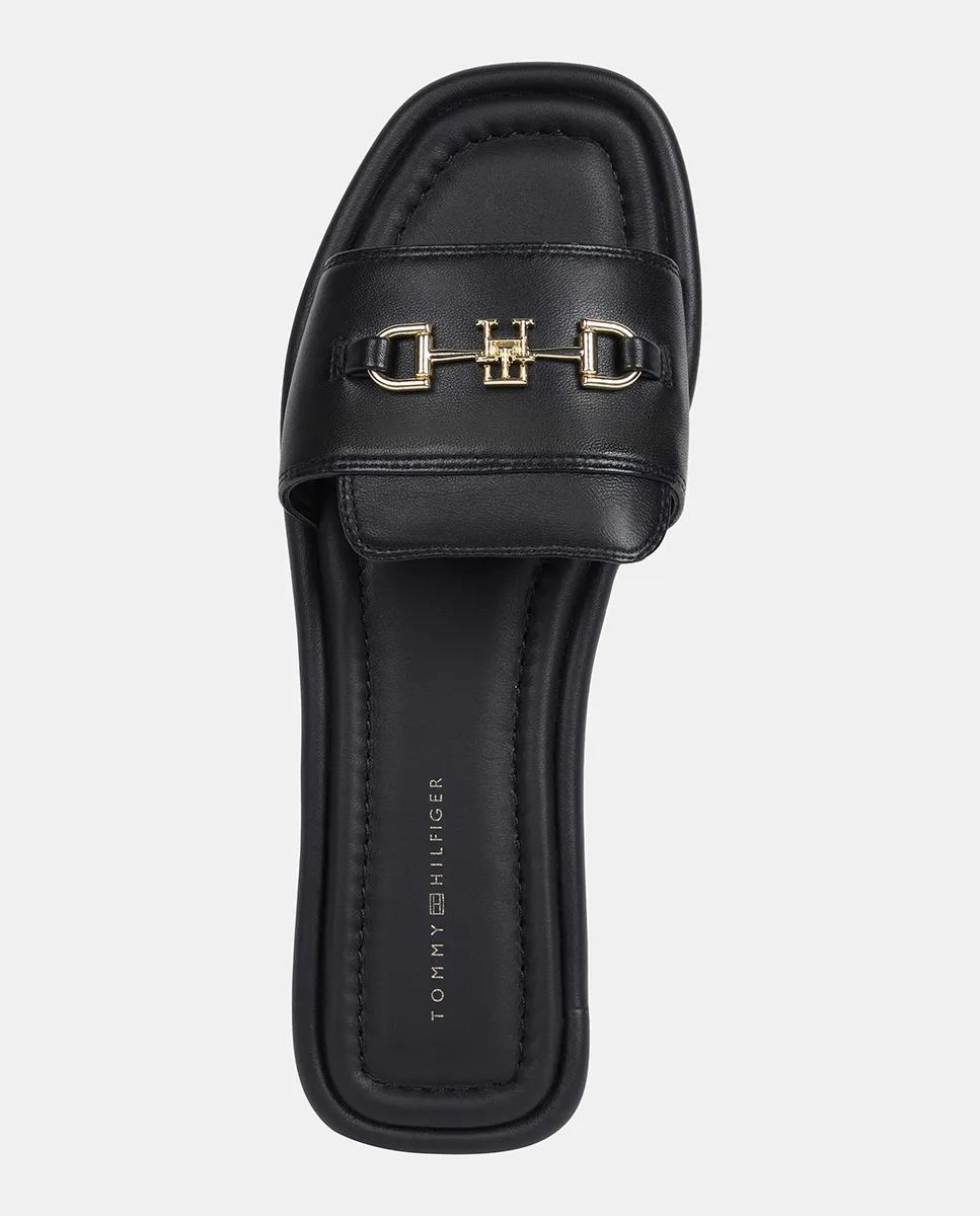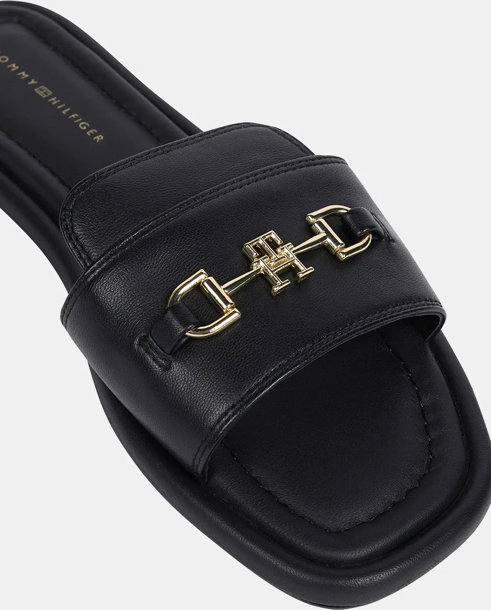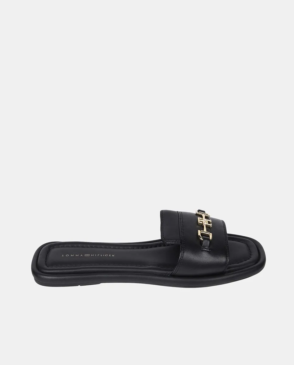 Сандалии Tommy Hilfiger на плоской подошве из кожи, черный
