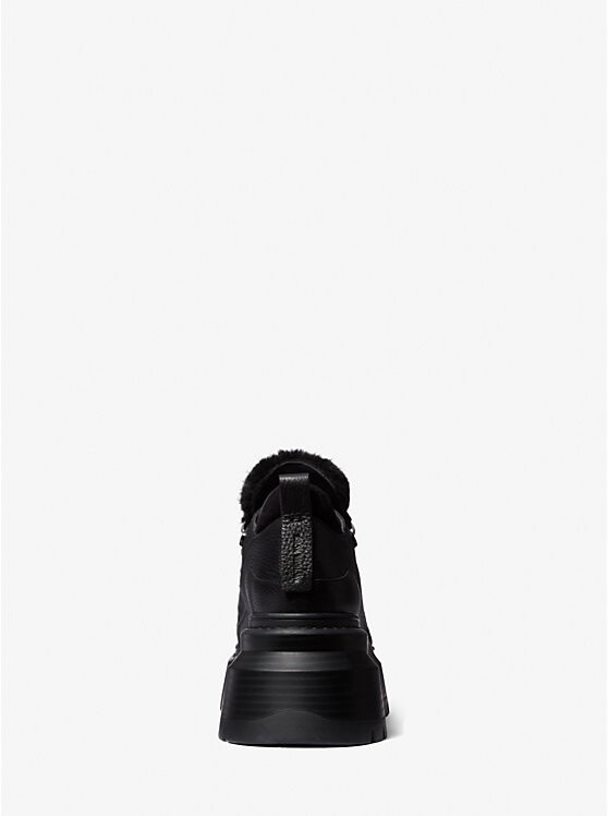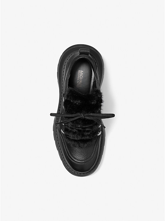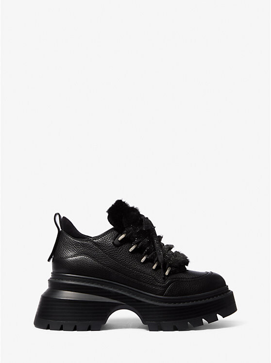 Бренд: Michael Kors Цвет: черный Наши Shiloh - доказательство того, что вам не нужно жертвовать стилем ради практичности. Изготовленные из мягкой кожи, эти туфли установлены на многоярусной платформе с резиновыми протекторами, которые будут цепляться за скользкие городские улицы. Вставки из искусственного меха и гладкие крючки для шнурков добавляют роскошный вид.
