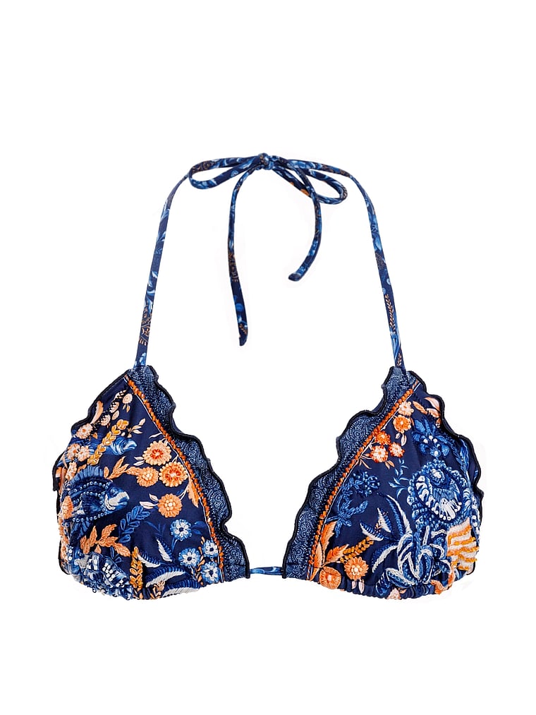 Бисер и вышивка ручной работы придают этому треугольному бикини-топу роскошный, ремесленный вид. Регулируемый треугольный слайдер обеспечивает идеальную посадку.