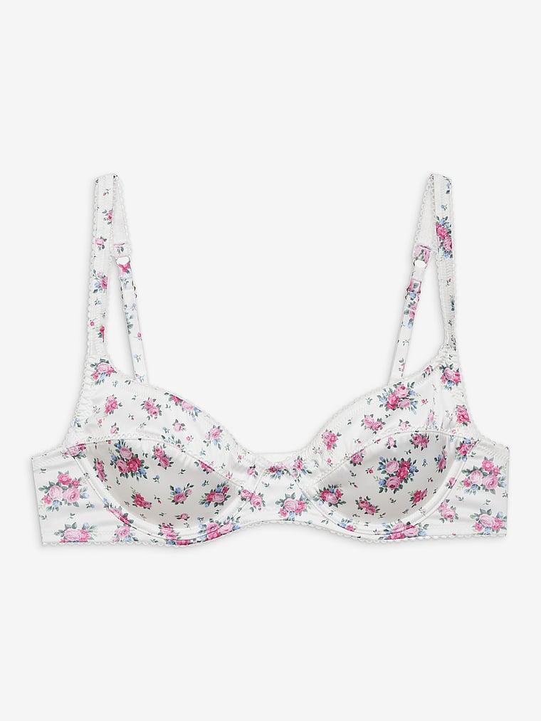 Вдохновленный винтажными мотивами китча, этот милый и женственный бюстгальтер на косточках станет идеальным ансамблем на День святого Валентина с изящным атласным принтом с цветочным принтом и отделкой пико.