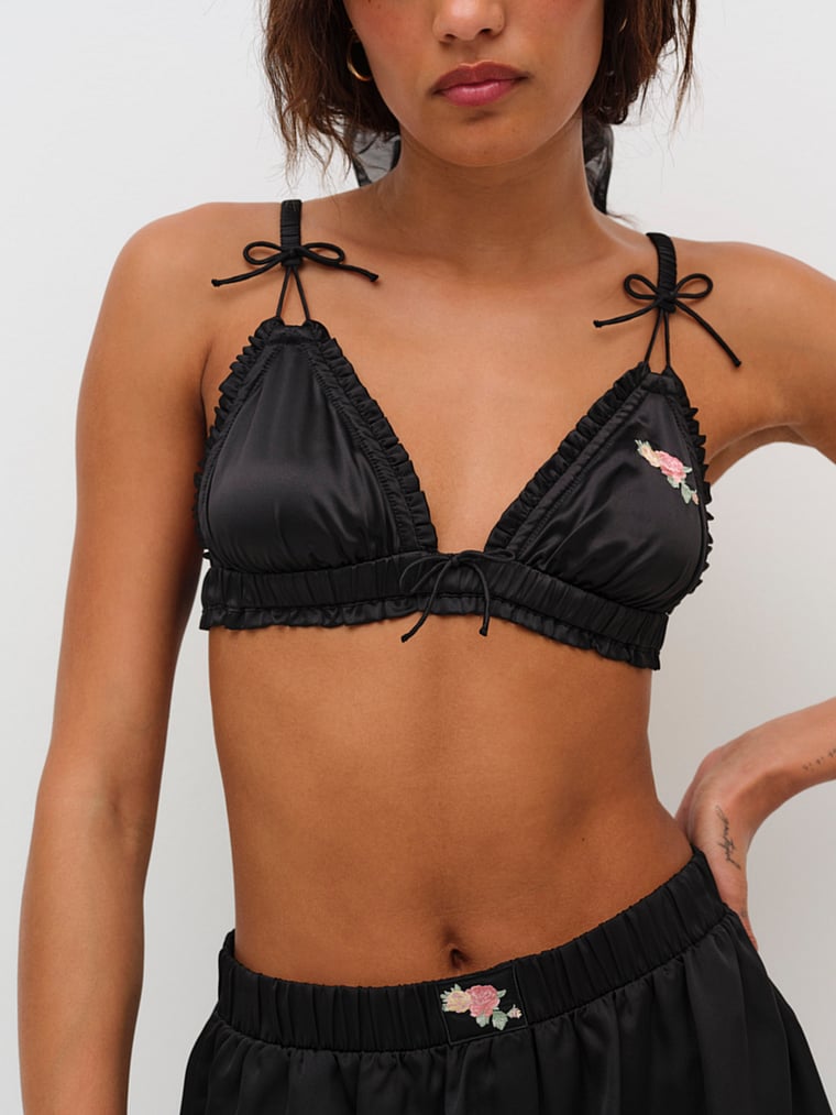 Изящные вышитые цветы дополняют этот романтический стиль. Ремешки в стиле резинок для волос и декоративные банты пико завершают образ. Сочетайте его с трусиками-стрингами Everyday, чтобы завершить образ.