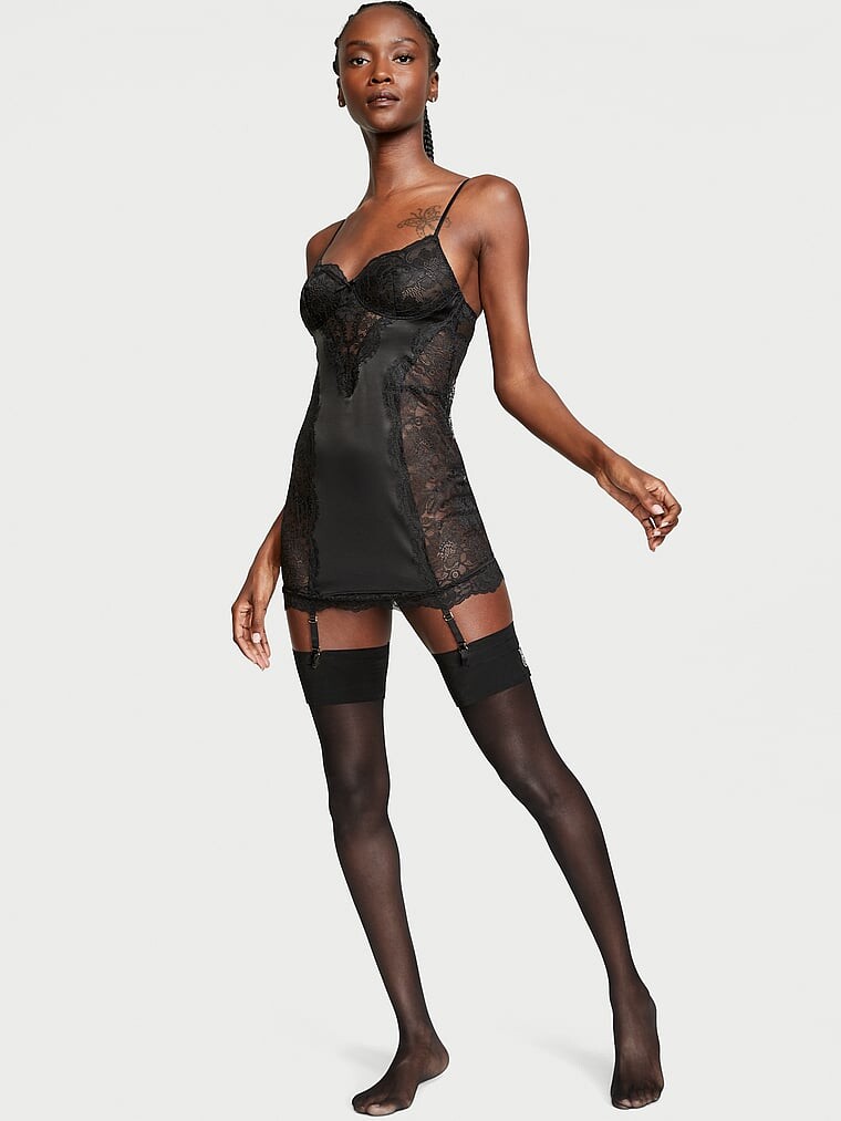 Это будет наш секрет. Инициалы VS, выложенные стразами, придают немного скрытого блеска широким, удобным полоскам этих чулок, доступных в различных смелых цветах. Примечание: для их удержания понадобится пояс для чулок.