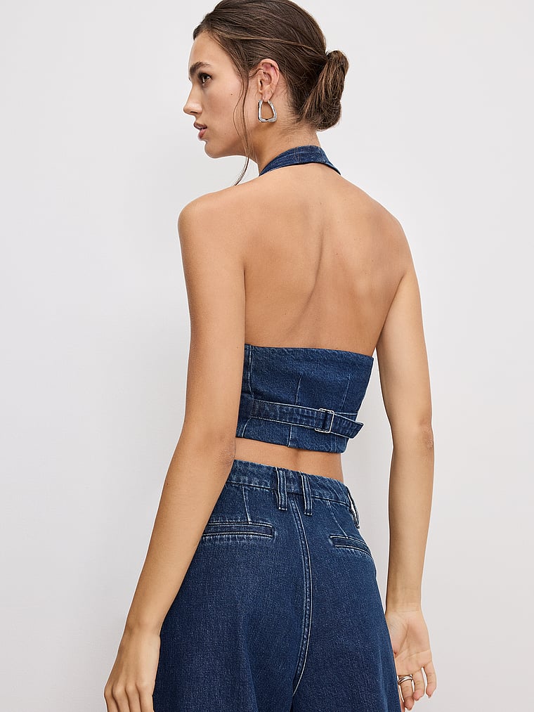 Джинсовый жилет-халтер Good American, индиго 9 403₽