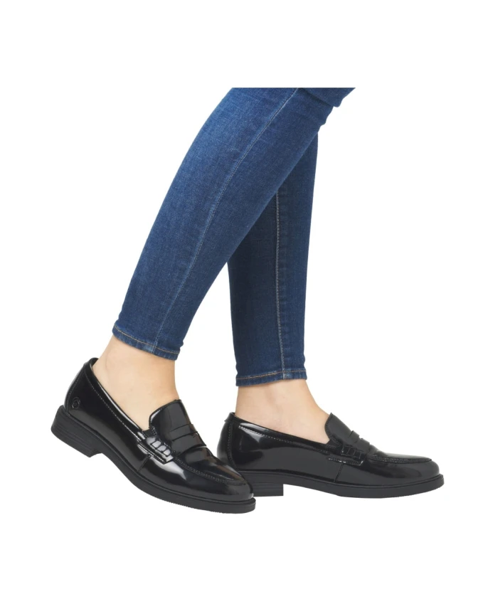Купите черные женские кожаные лоферы Remonte (код товара: D1U01-00), которые станут стильным и удобным дополнением к вашей коллекции обуви. Эти лоферы идеально подходят для взрослых женщин и являются универсальным выбором для повседневной носки.