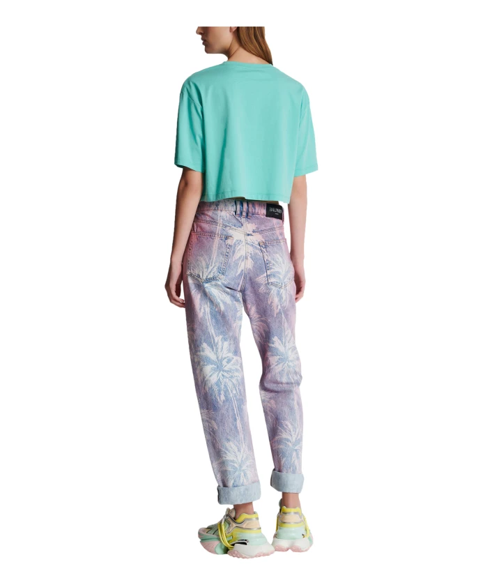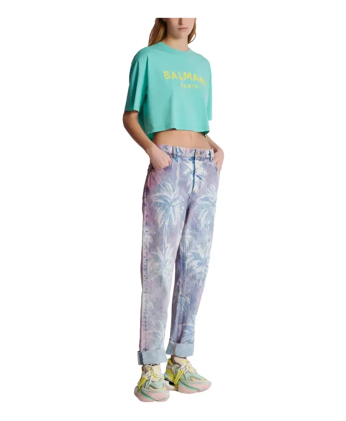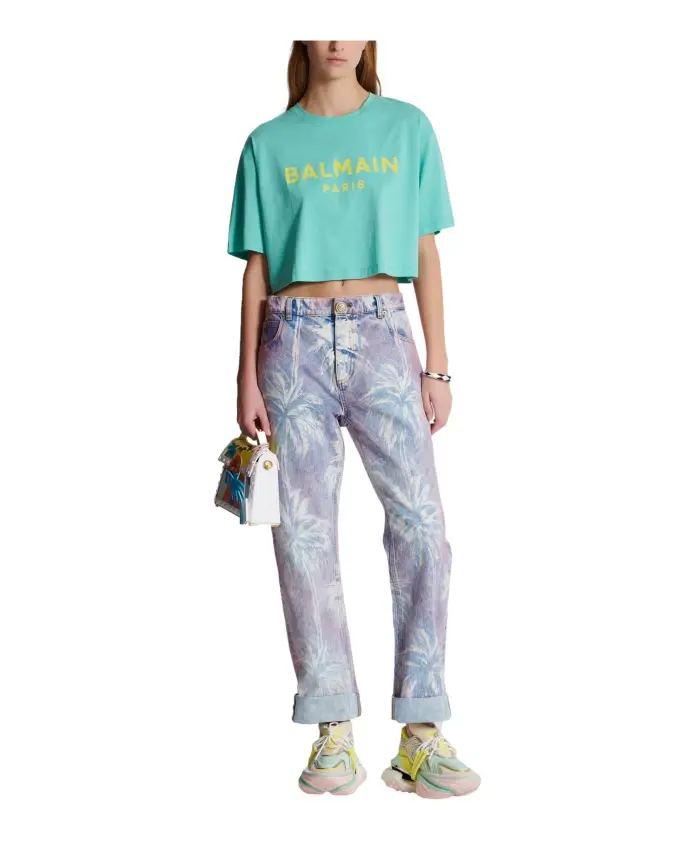 Футболка с принтом Balmain ParisУкороченный, свободный кройКруглый вырез с ребристым краемКороткие рукаваКонтрастный логотип Balmain Paris спередиРост модели 180 см, размер SОсновной материал: 100% хлопокСделано в ПортугалииАртикул: BF1EE020BB02100% хлопковых волокон, использованных для изготовления этой одежды, сертифицированы. и органически выращенный
