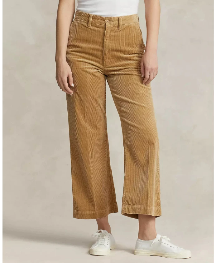 Женские вельветовые брюки от Polo Ralph Lauren бежевого цвета, широкие брюки, средняя талия, длина до щиколотки, классическая застежка на молнию и пуговицы на поясе, петли для ремня с регулируемой посадкой на талии, пять карманов, вытачки сзади. Пояс из высококачественного хлопка с вниманием к деталям. Размеры: высота талии для размера М: 29,2 см.